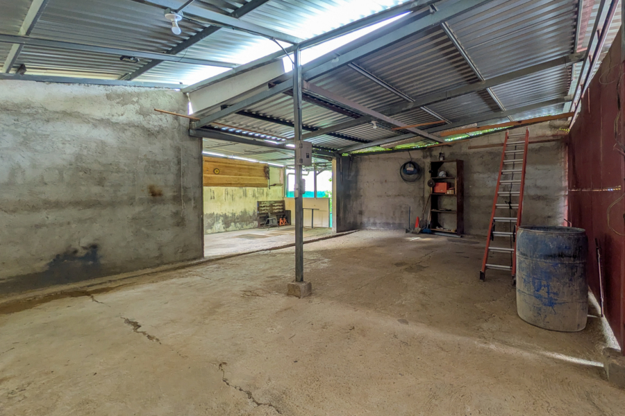 An 80-square-meter garage, workshop, and covered carport add practicality, while the established Pequeña Bavaria community offers a peaceful setting with no HOA fees.