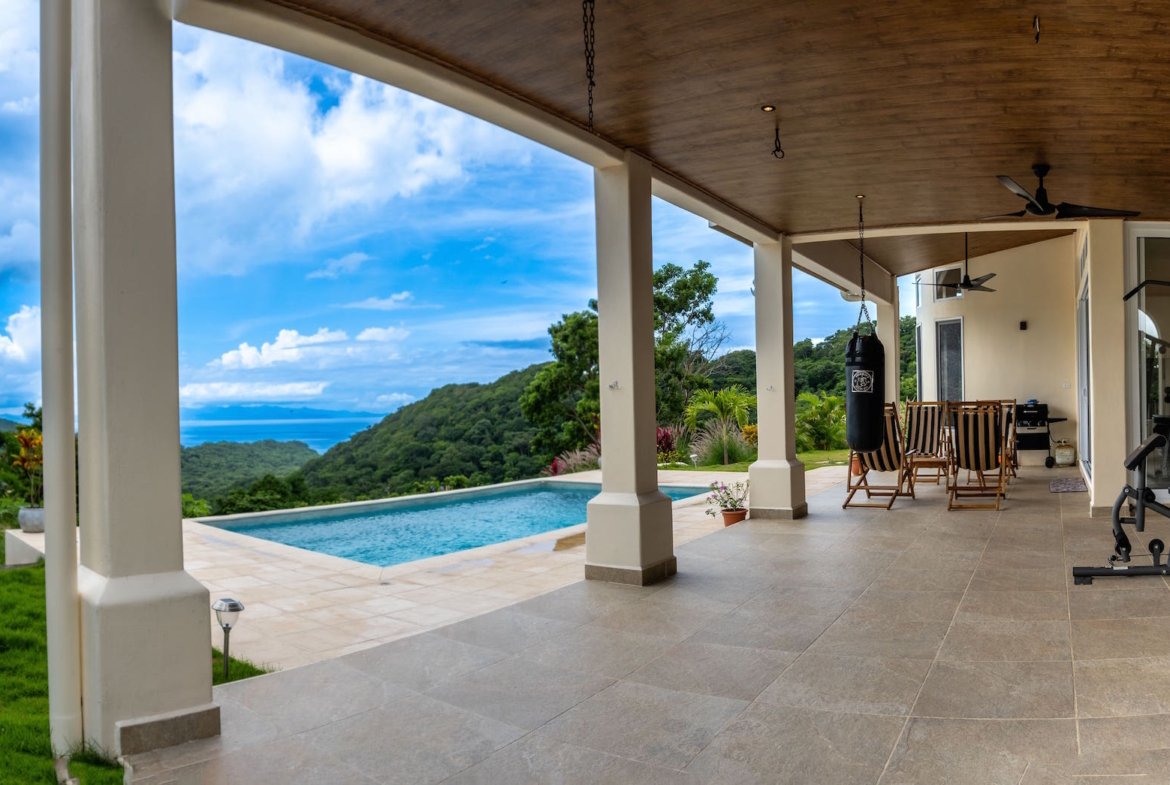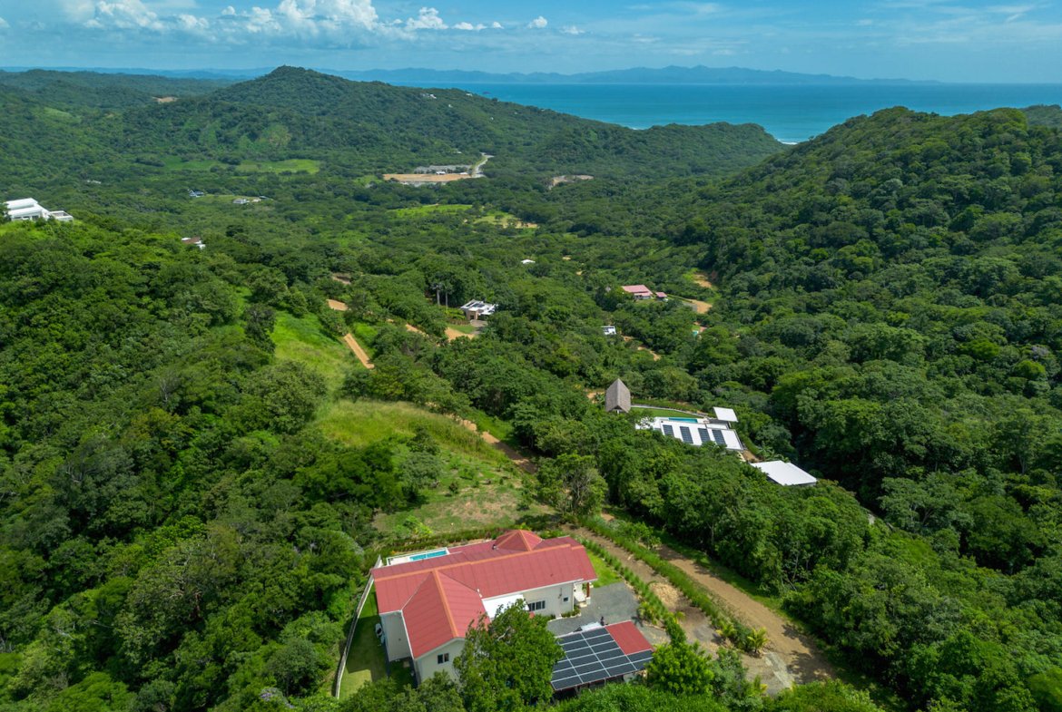Escape to your own private sanctuary in Big Sky Ranch, an exclusive gated community just minutes from San Juan del Sur. Perched on a scenic hilltop, this eco-friendly estate combines modern comfort with complete privacy, offering sweeping ocean and valley views alongside the peace of sustainable living.