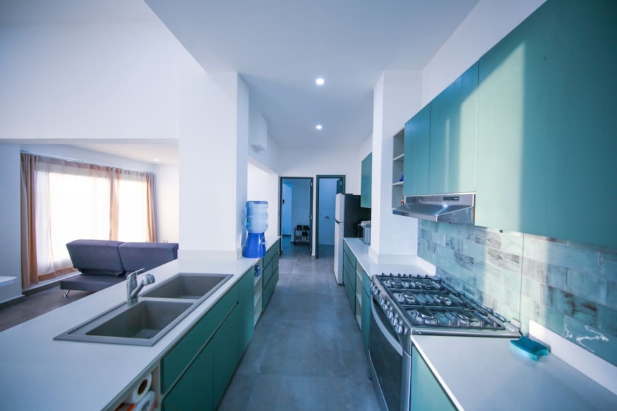 The main residence occupies the top two levels and features a large private terrace with a pool, perfect for relaxing and entertaining while enjoying the Pacific breeze.