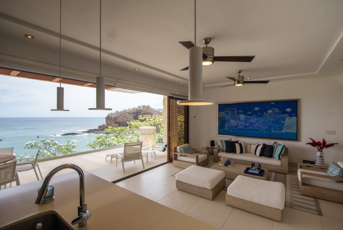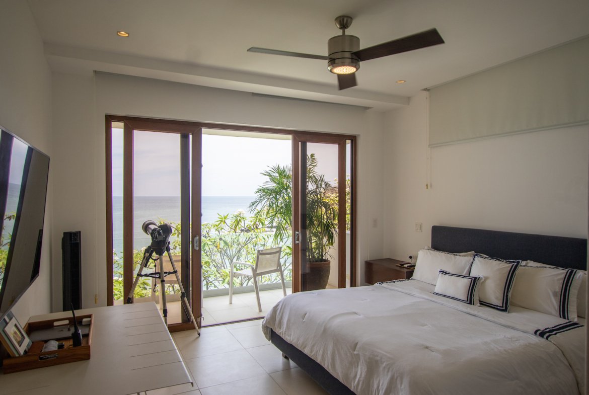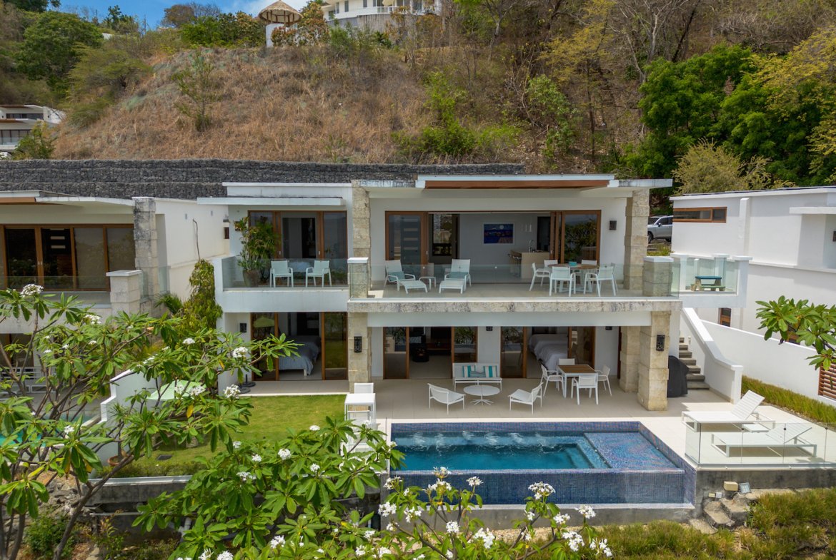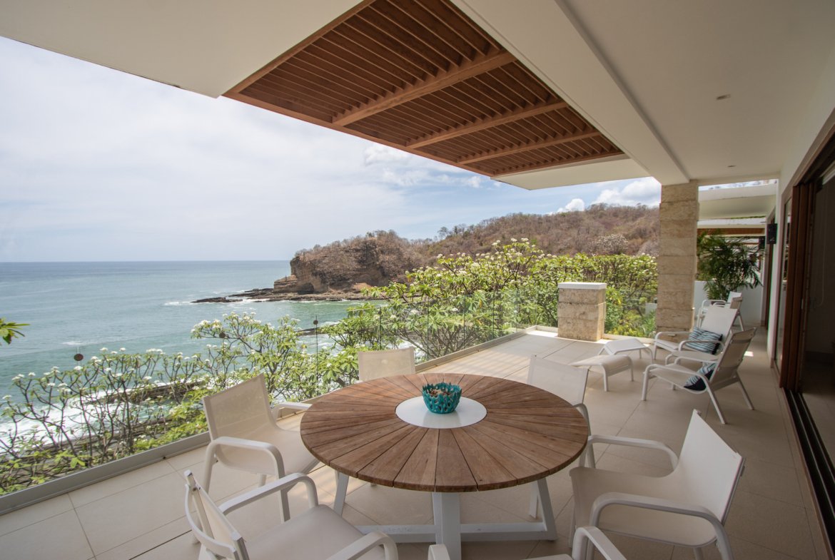 Experience the ultimate in coastal living at Casa Bahía 5, an exquisite oceanfront estate within the prestigious gated community of La Joya in Pacific Marlin. Located only minutes from San Juan del Sur, this two-story luxury residence boasts panoramic 180-degree views of the Pacific Ocean and seamlessly blends indoor and outdoor living with modern sophistication.