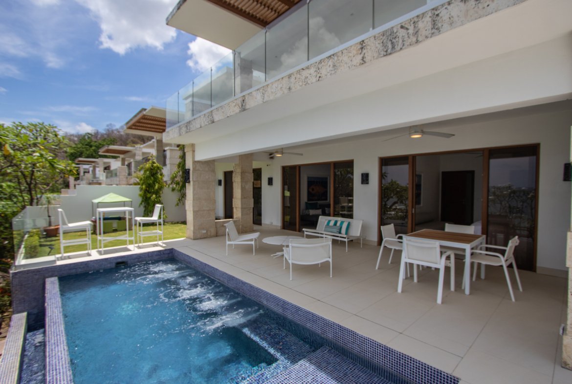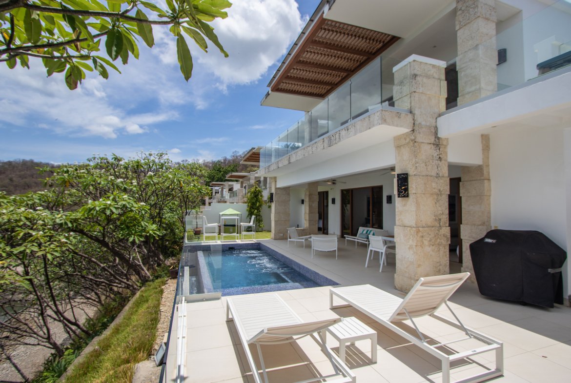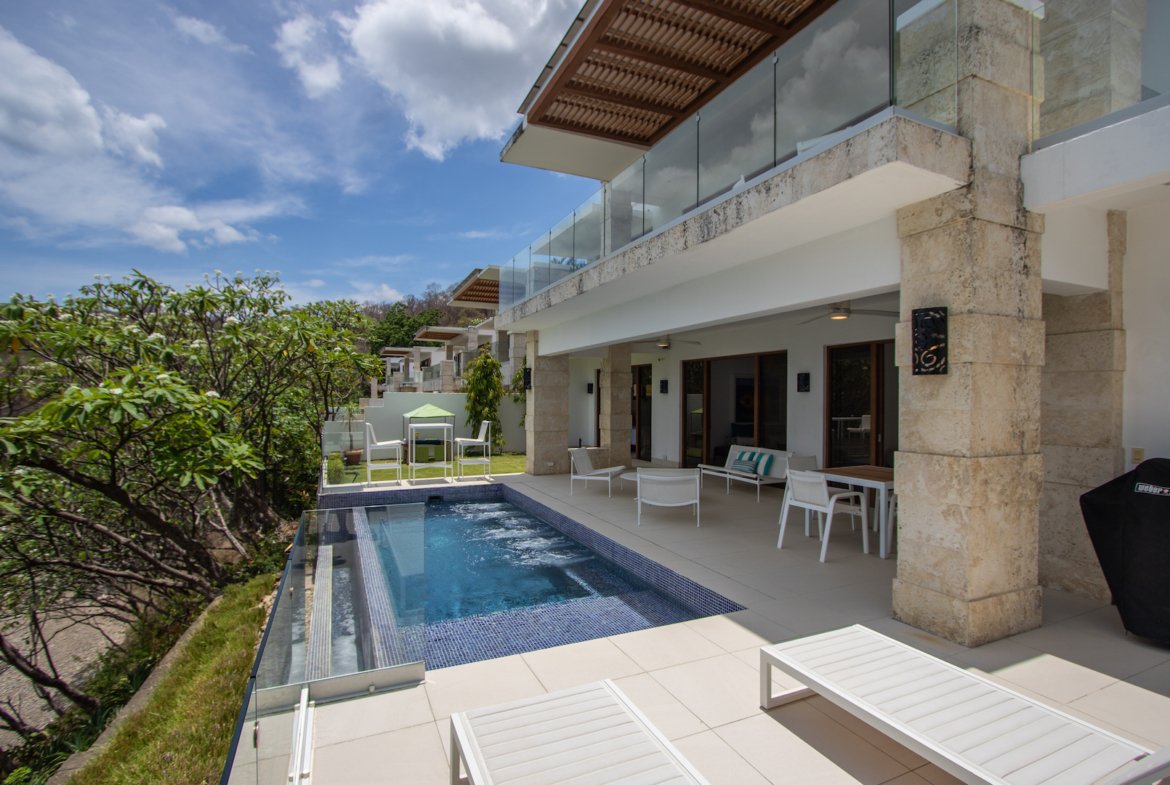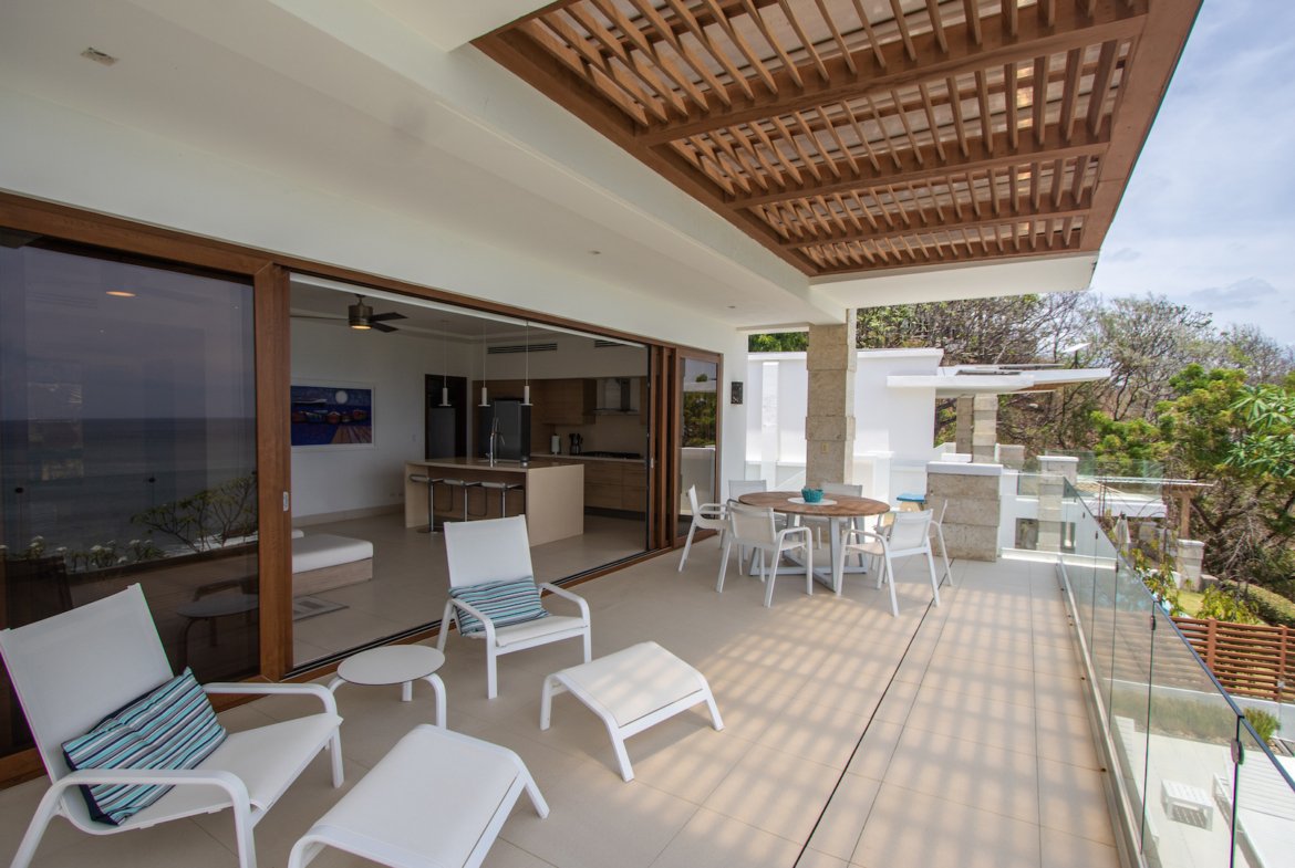Experience the ultimate in coastal living at Casa Bahía 5, an exquisite oceanfront estate within the prestigious gated community of La Joya in Pacific Marlin. Located only minutes from San Juan del Sur, this two-story luxury residence boasts panoramic 180-degree views of the Pacific Ocean and seamlessly blends indoor and outdoor living with modern sophistication.