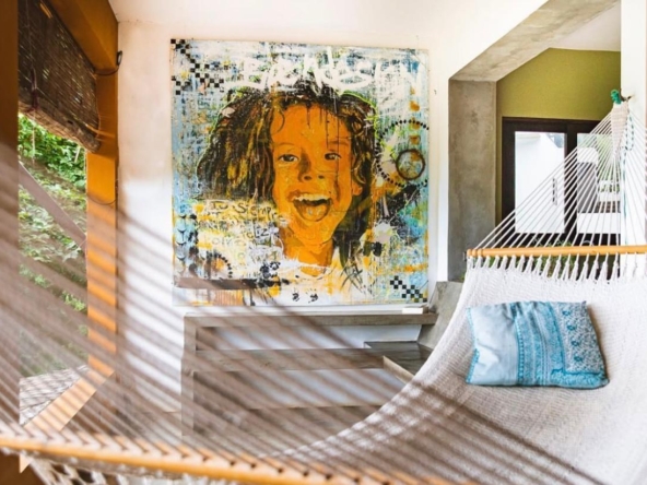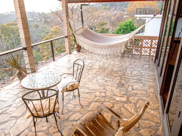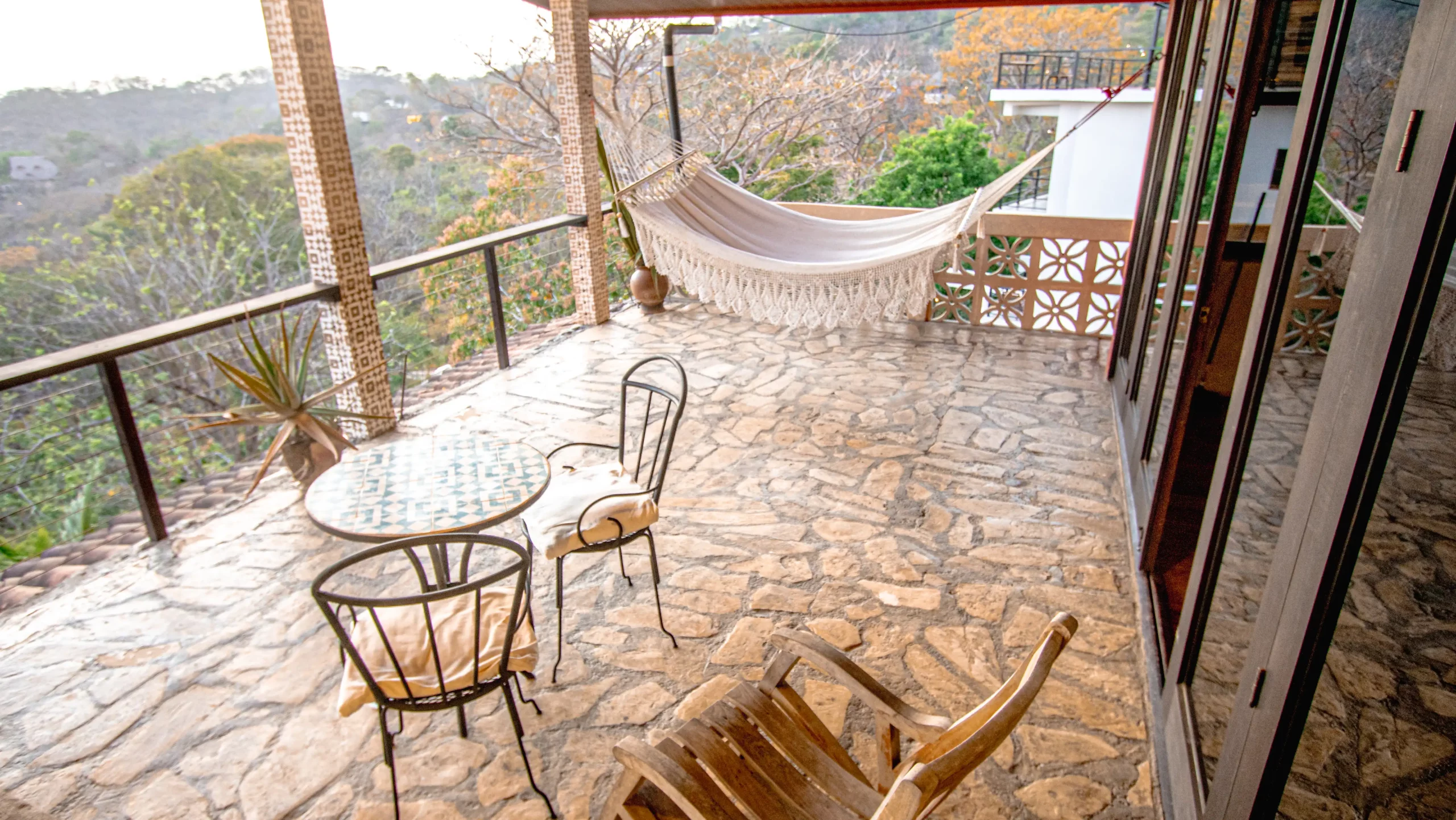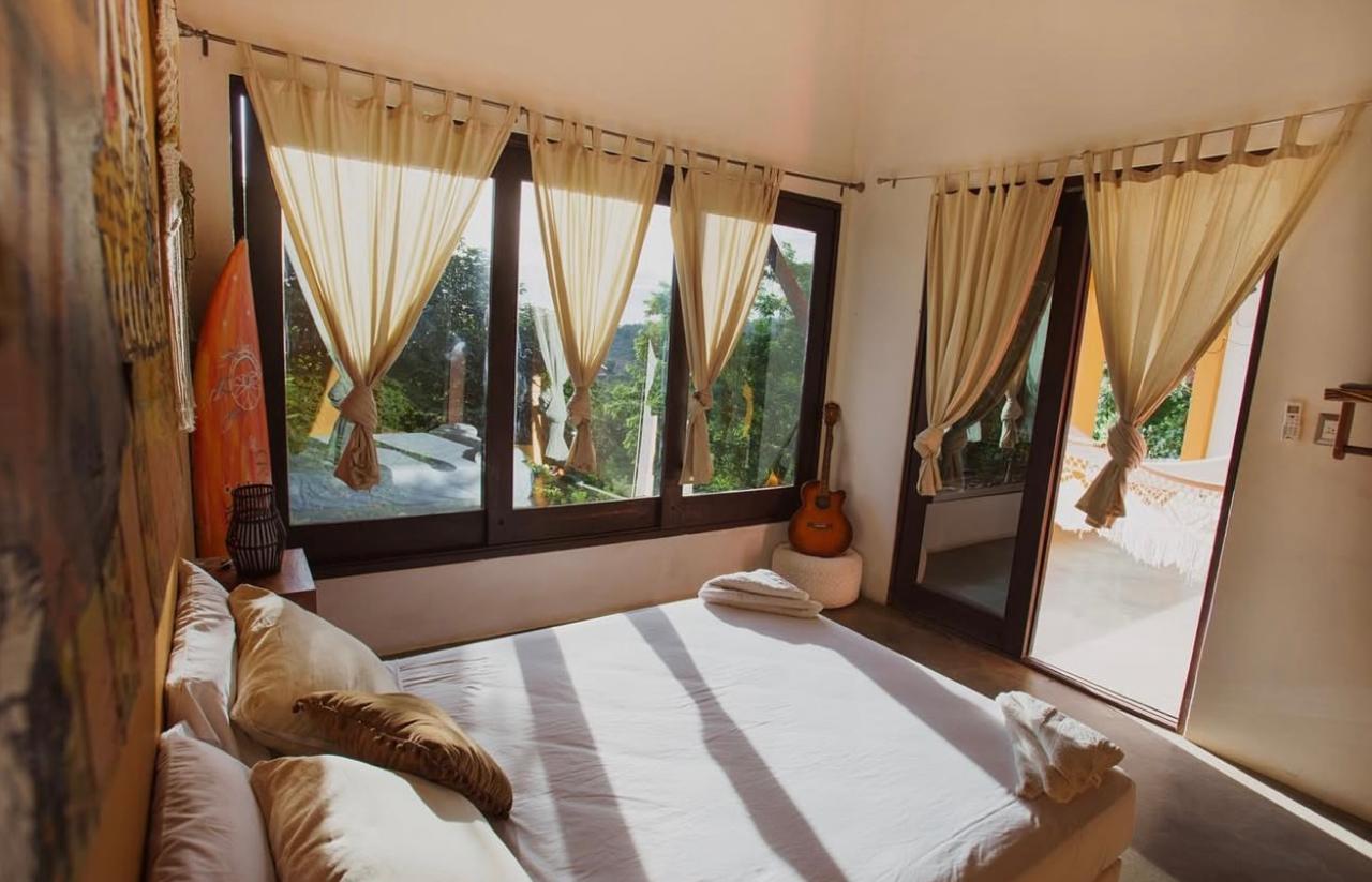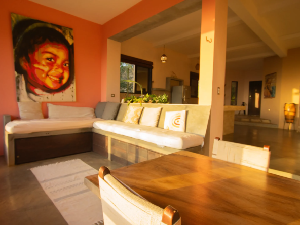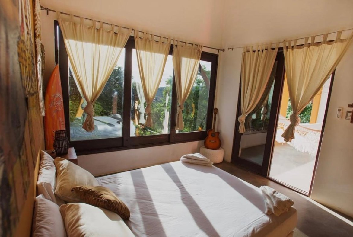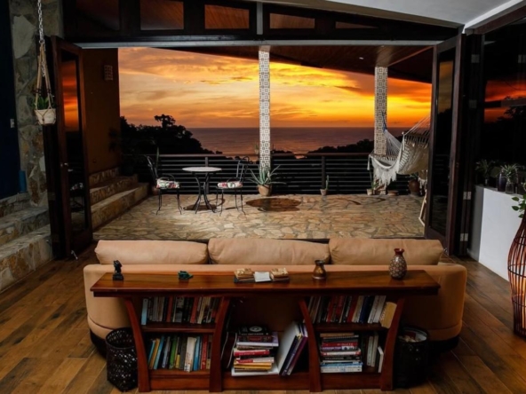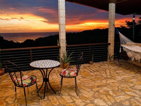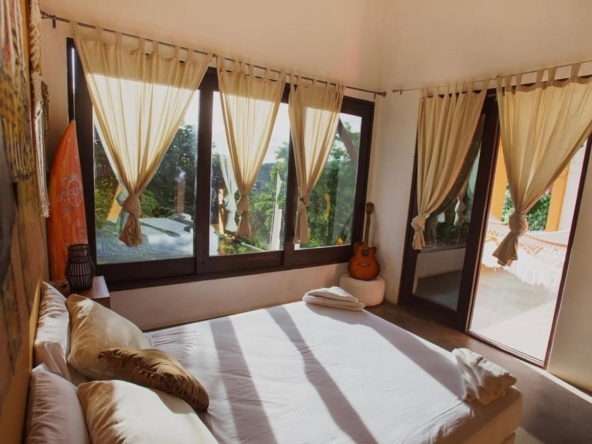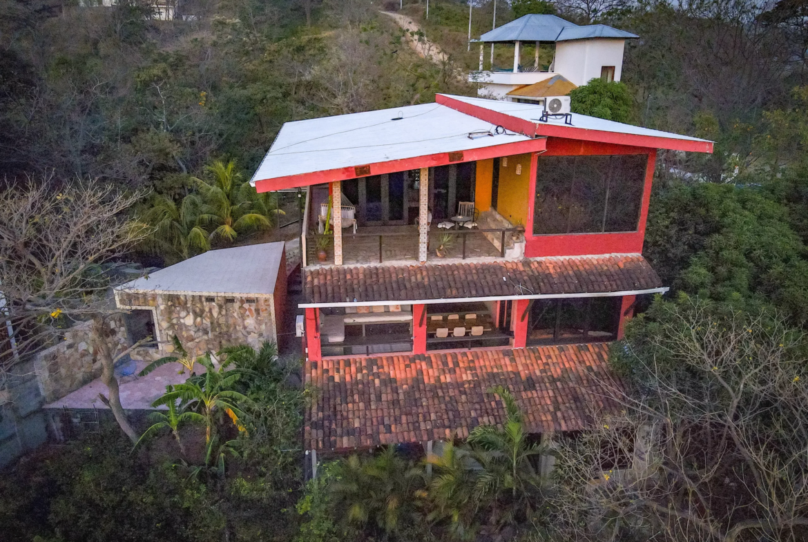 Nestled on the hillsides above the famed surf break of Playa Maderas, this distinctive multi-level property offers a rare blend of personal sanctuary and investment opportunity. Designed across three separate floors, the home functions as a collection of independent living spaces, each with direct access to panoramic ocean vistas and cooling Pacific breezes.