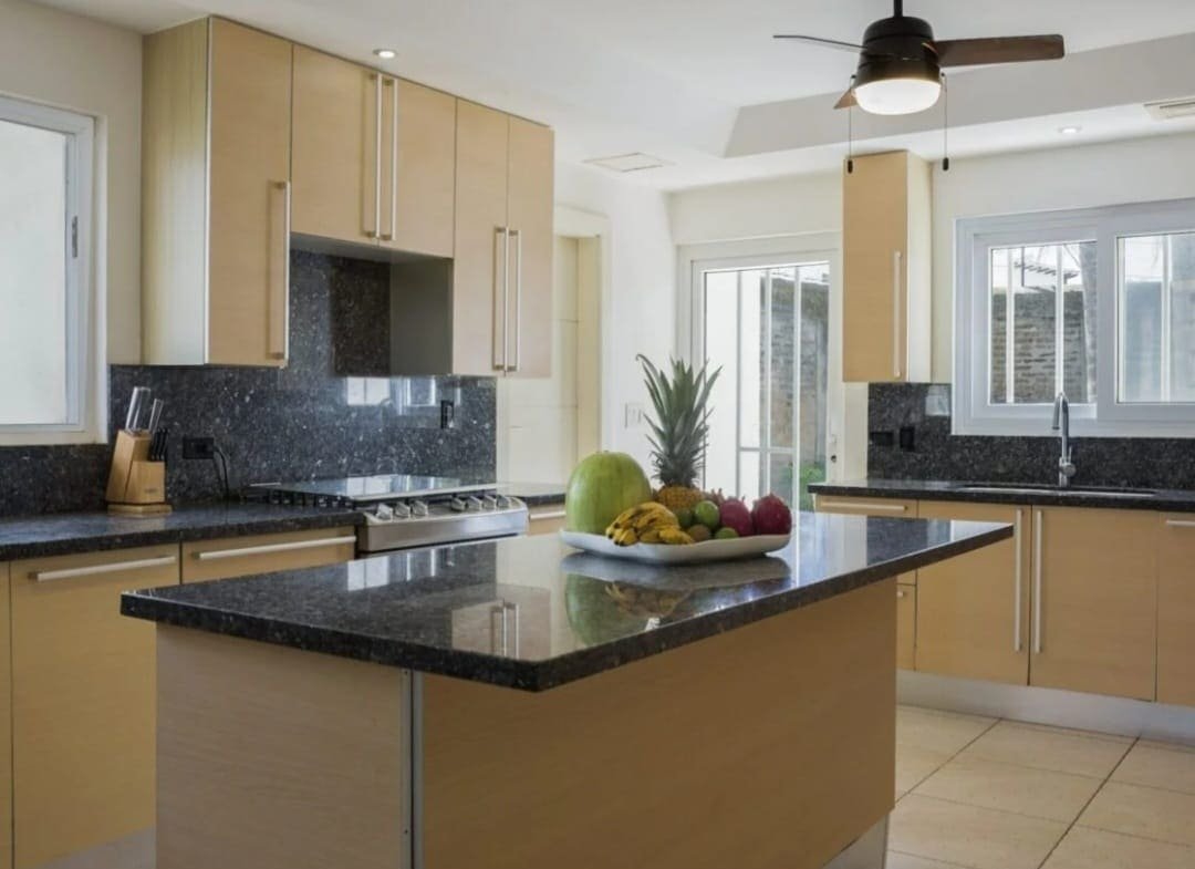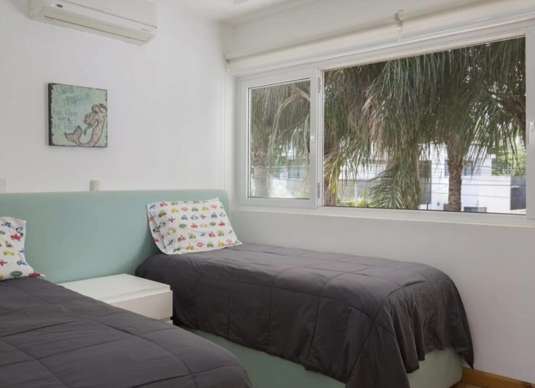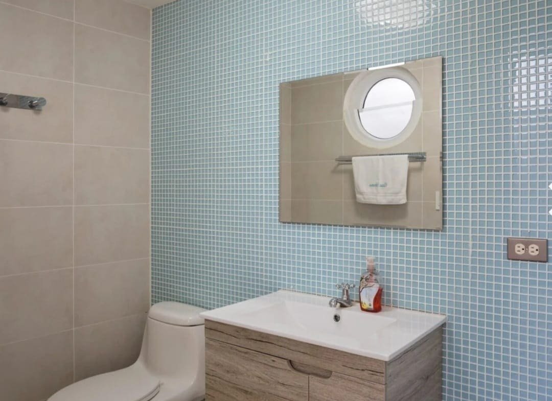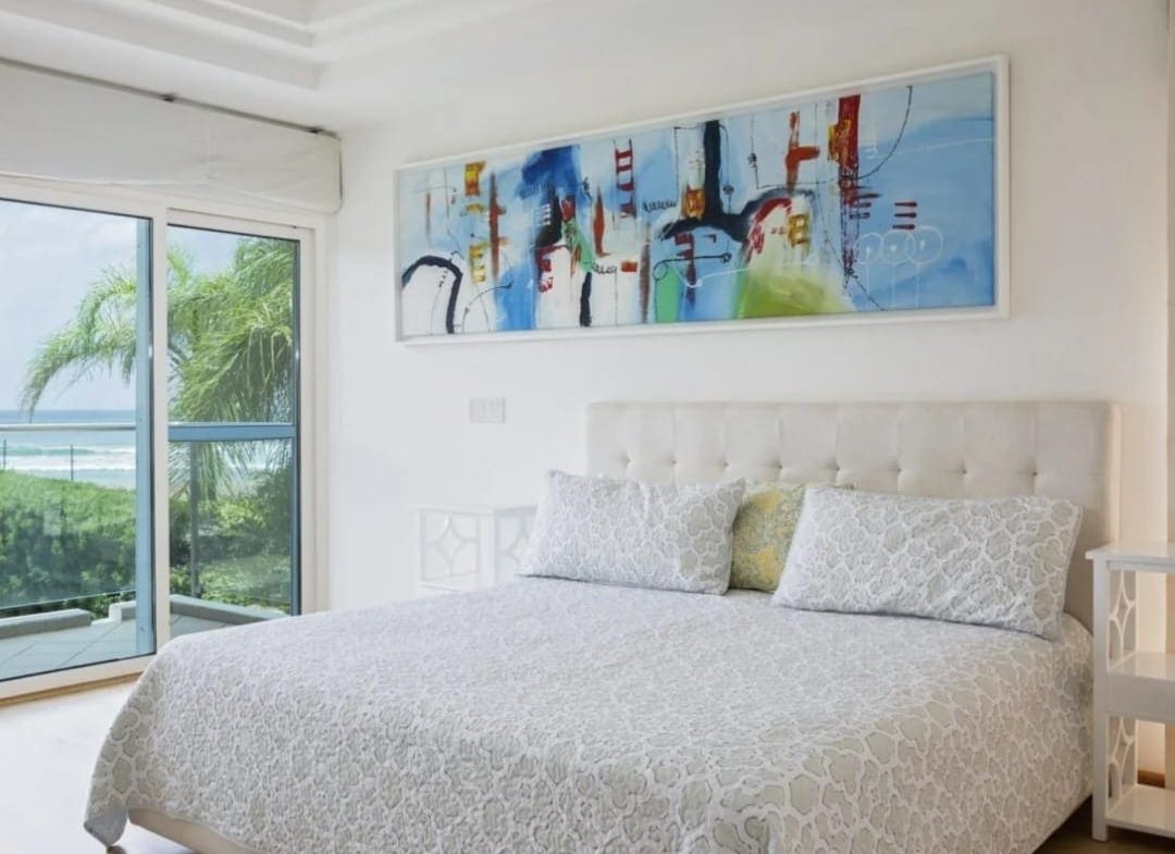 Casa Serena Beachfront Home boasts five uniquely designed bedrooms, each offering a luxurious retreat. The three master suites have king-sized beds, ensuite bathrooms, air conditioning, walk-in closets, and custom furniture. Two master bedrooms feature private balconies with breathtaking ocean views, providing a serene space to unwind. The additional two bedrooms are perfect for younger guests, with single beds, walk-in closets, air conditioning, and a shared bathroom.