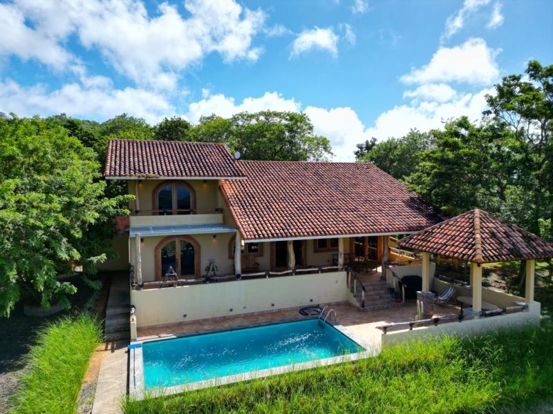 Discover the perfect blend of tranquility and convenience with this exquisite 3-bedroom, 2-bathroom home, nestled on almost 2 acres of lush, vibrant land. Just a 15-minute drive from the lively town of San Juan Del Sur, this property offers breathtaking panoramic ocean views, making it the ultimate retreat for those seeking serenity and natural beauty.