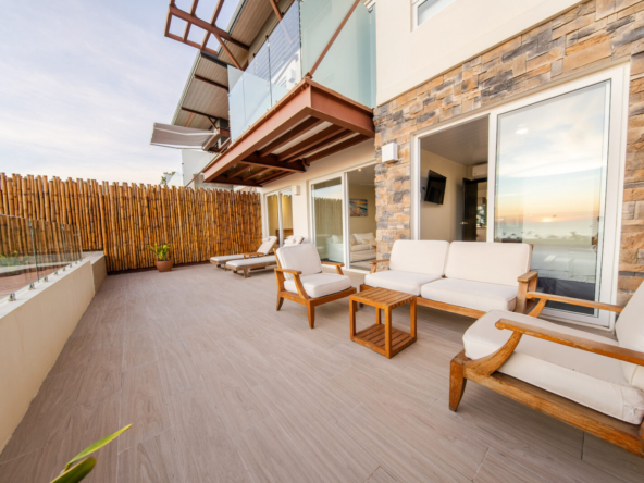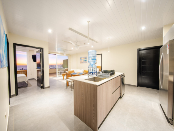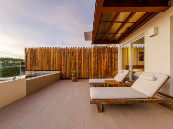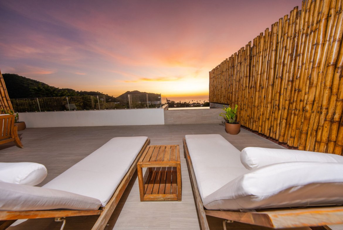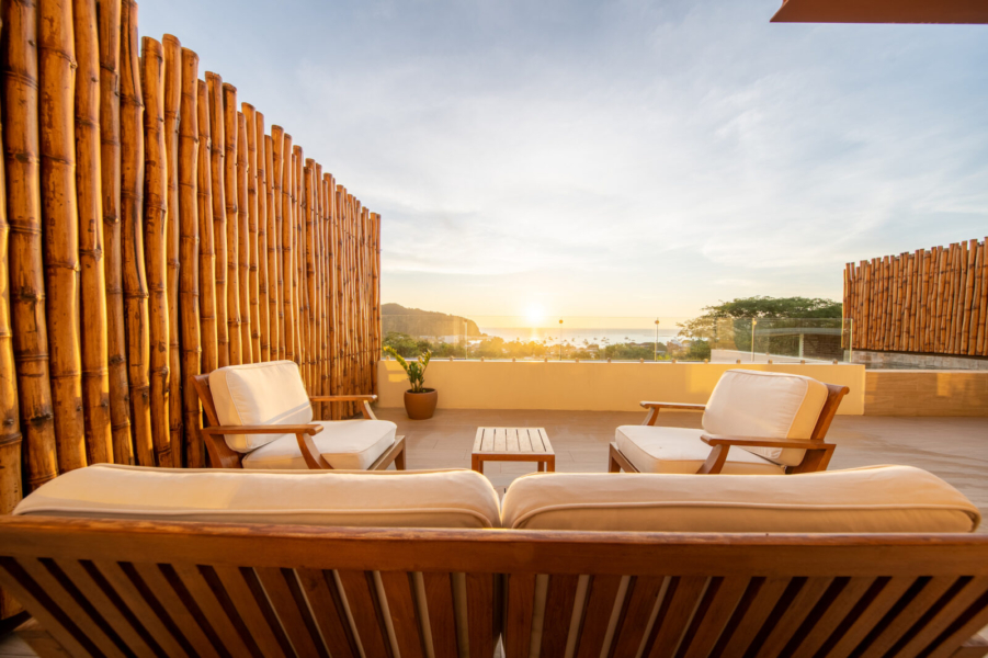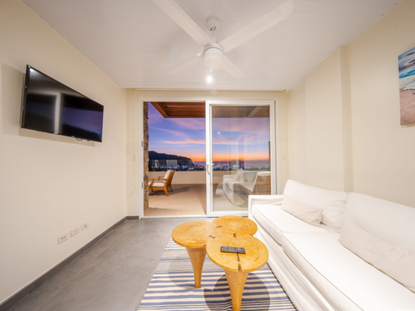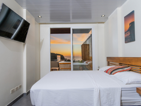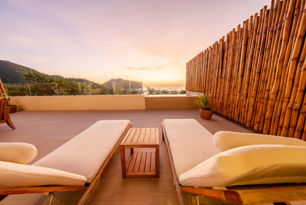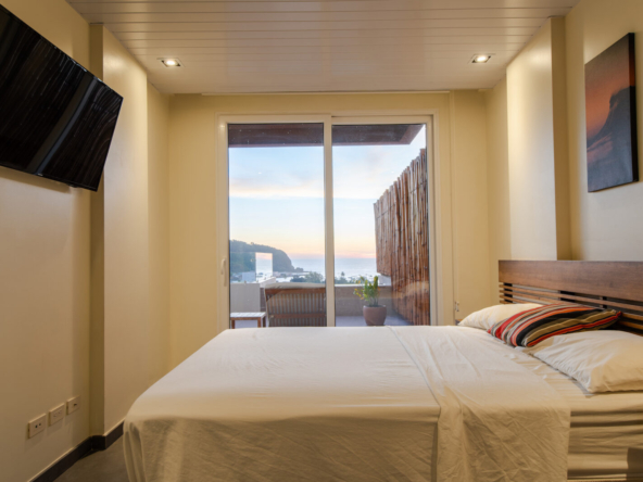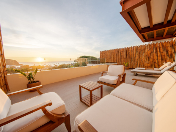 The highlight of this residence is the spacious private terrace, offering panoramic views of the Pacific Ocean and the vibrant town below. This exceptional outdoor space is complete with its own private plunge pool, creating the perfect setting for morning relaxation, sunset cocktails, and effortless entertaining.