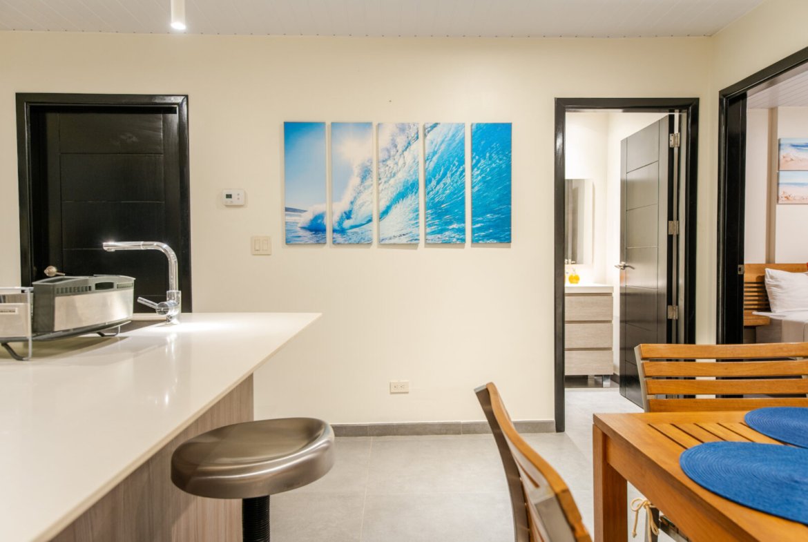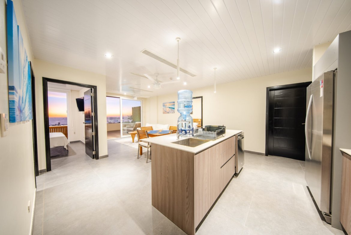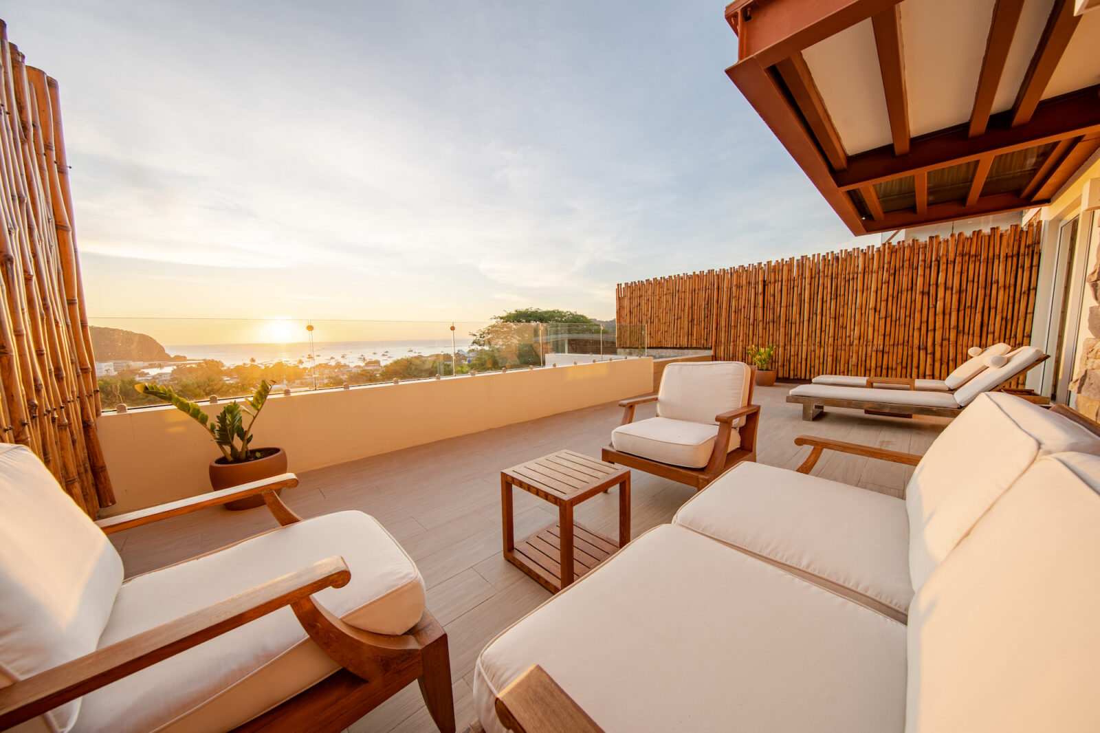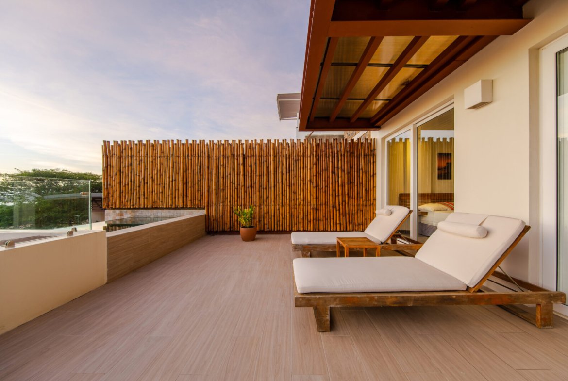The highlight of this residence is the spacious private terrace, offering panoramic views of the Pacific Ocean and the vibrant town below. This exceptional outdoor space is complete with its own private plunge pool, creating the perfect setting for morning relaxation, sunset cocktails, and effortless entertaining.