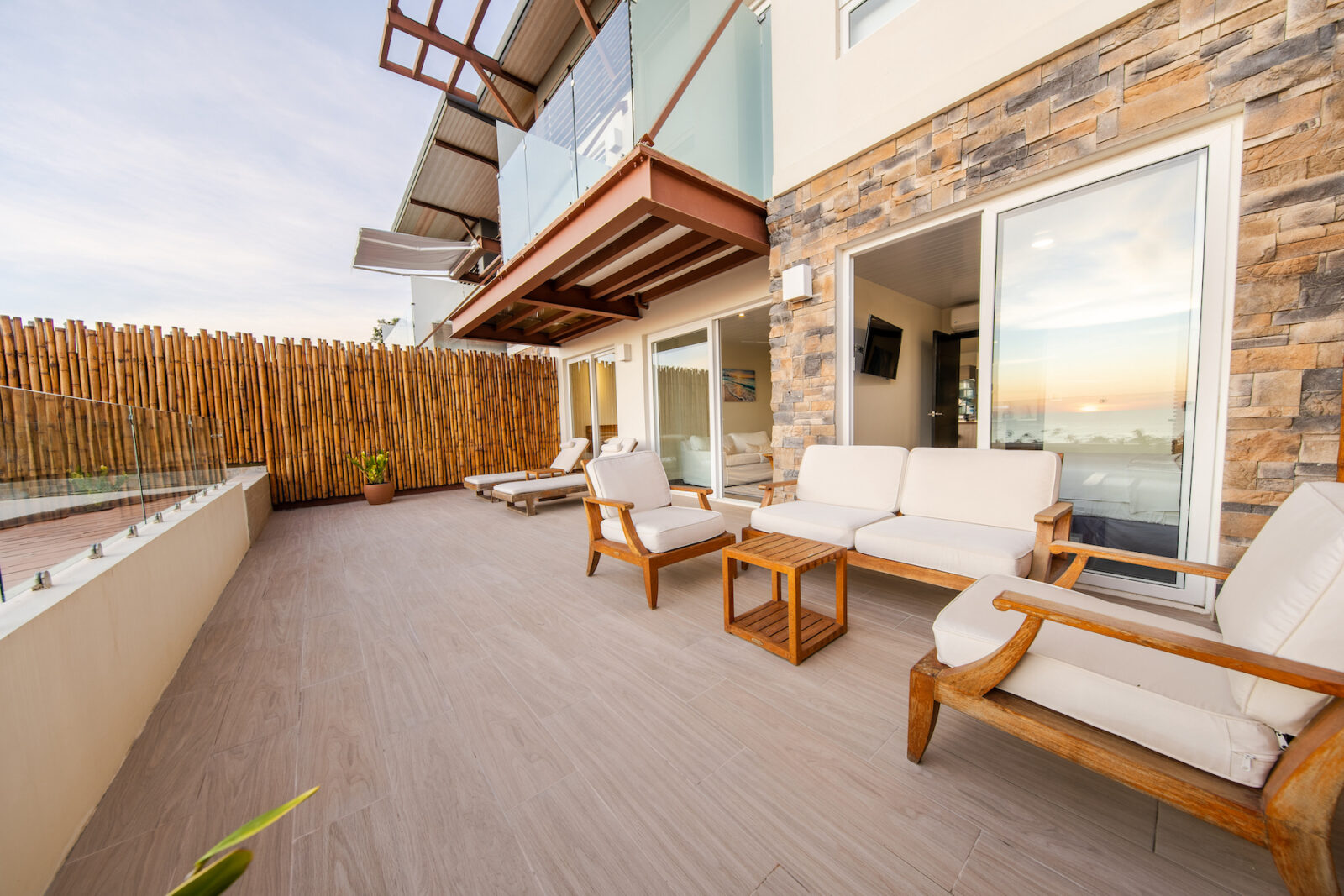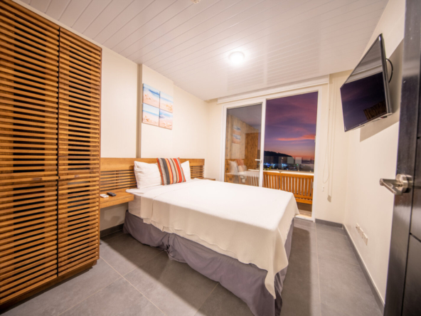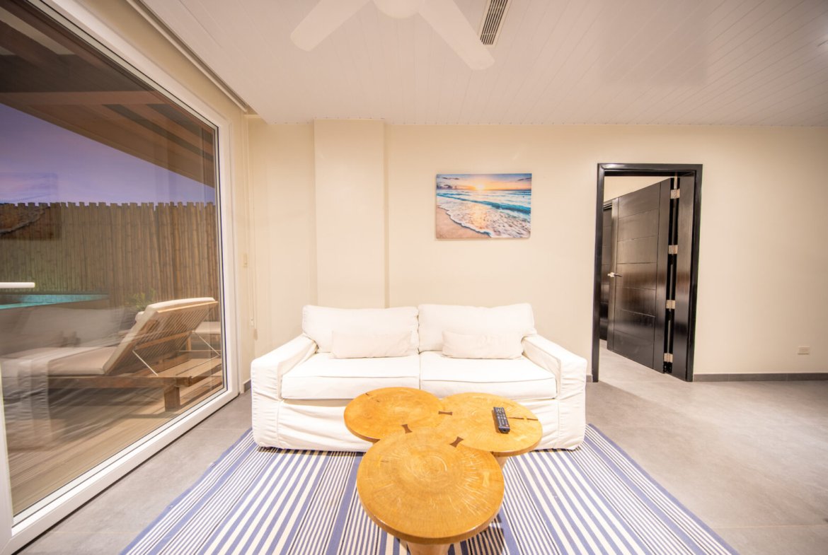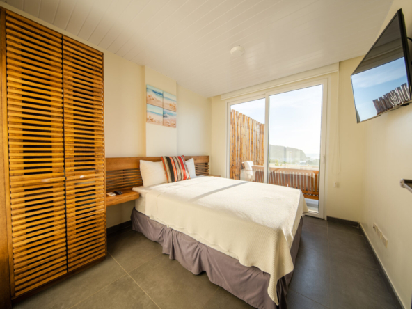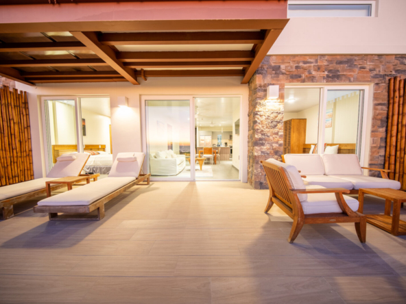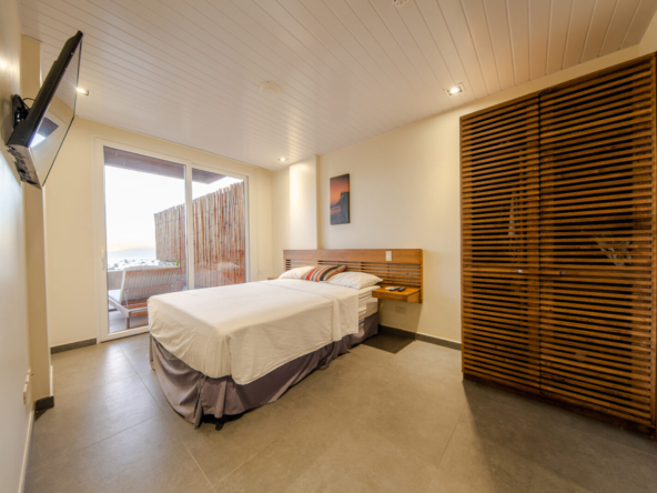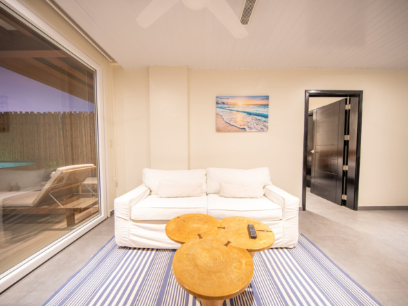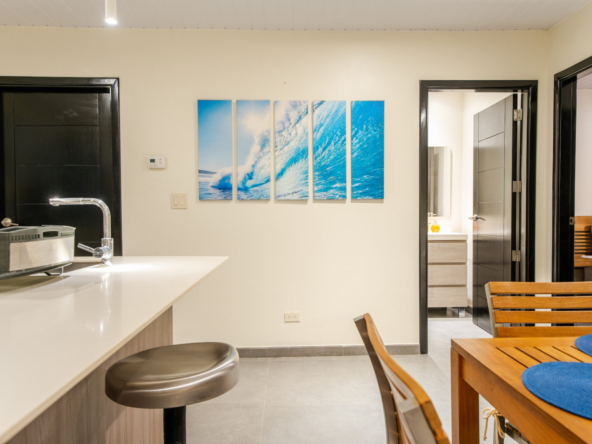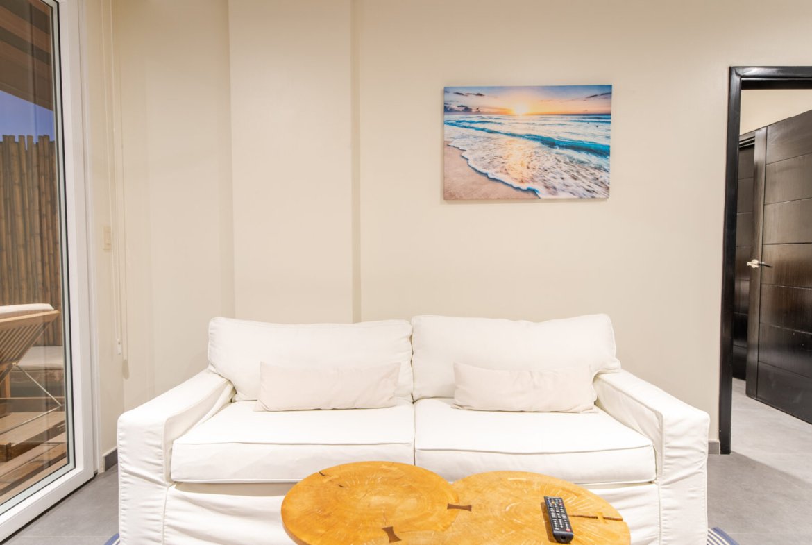 The highlight of this residence is the spacious private terrace, offering panoramic views of the Pacific Ocean and the vibrant town below. This exceptional outdoor space is complete with its own private plunge pool, creating the perfect setting for morning relaxation, sunset cocktails, and effortless entertaining.