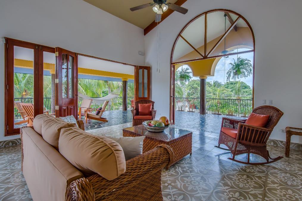 Wraparound covered patios with handcrafted furniture and hammocks
