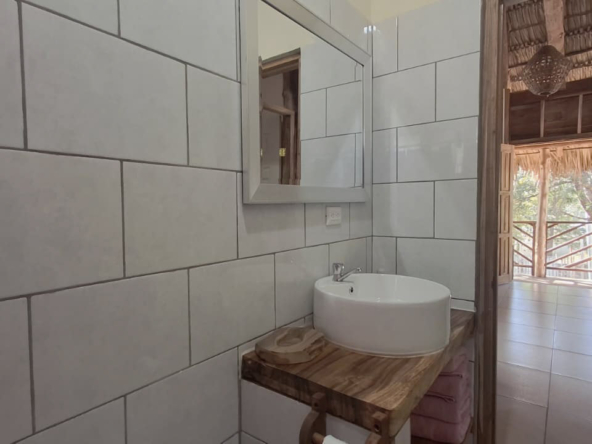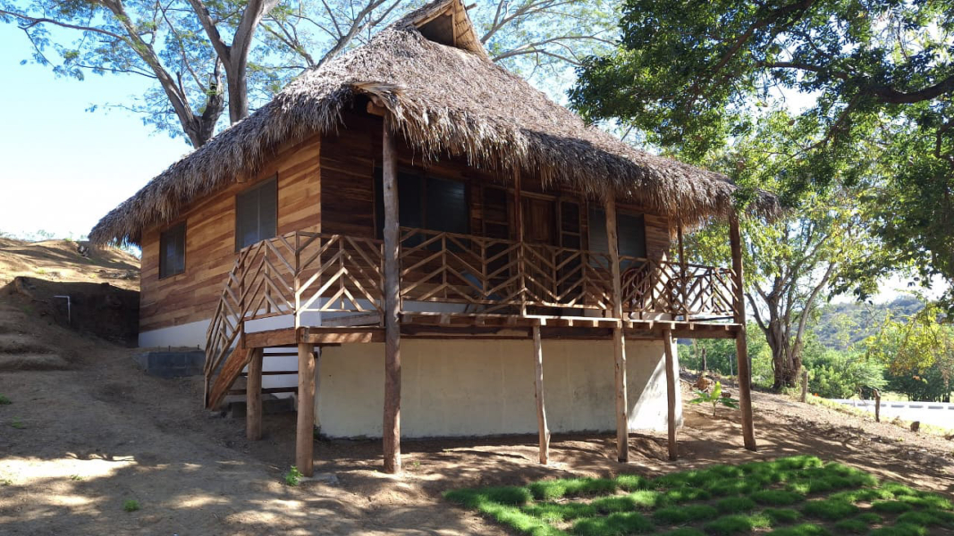 This elevated bungalow-style cabin, featuring a rustic tropical design, is built primarily with natural wood and designed to offer a fresh, functional, and low-maintenance living space. It is located just 5 minutes from downtown San Juan del Sur, directly along the coastal road, with easy year-round access, and approximately 10 minutes from Maderas and Marsella beaches, known for their relaxed atmosphere and popularity among surfers and visitors.