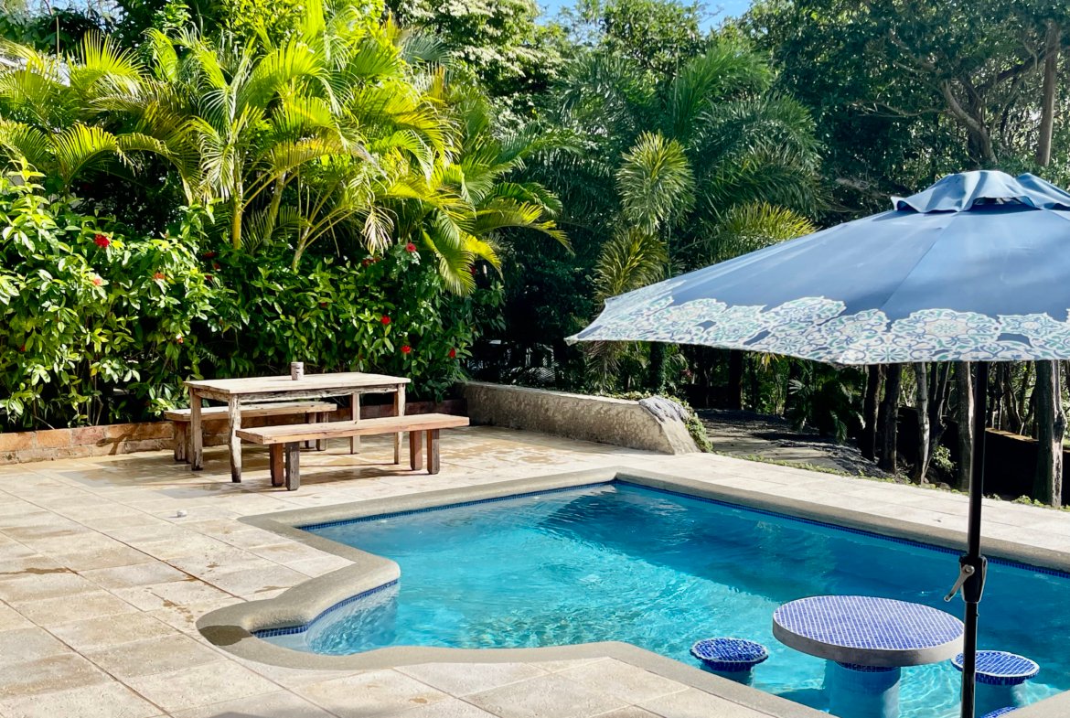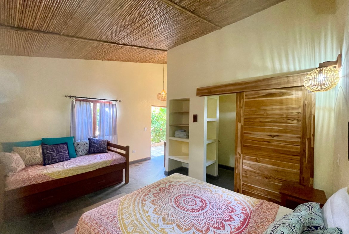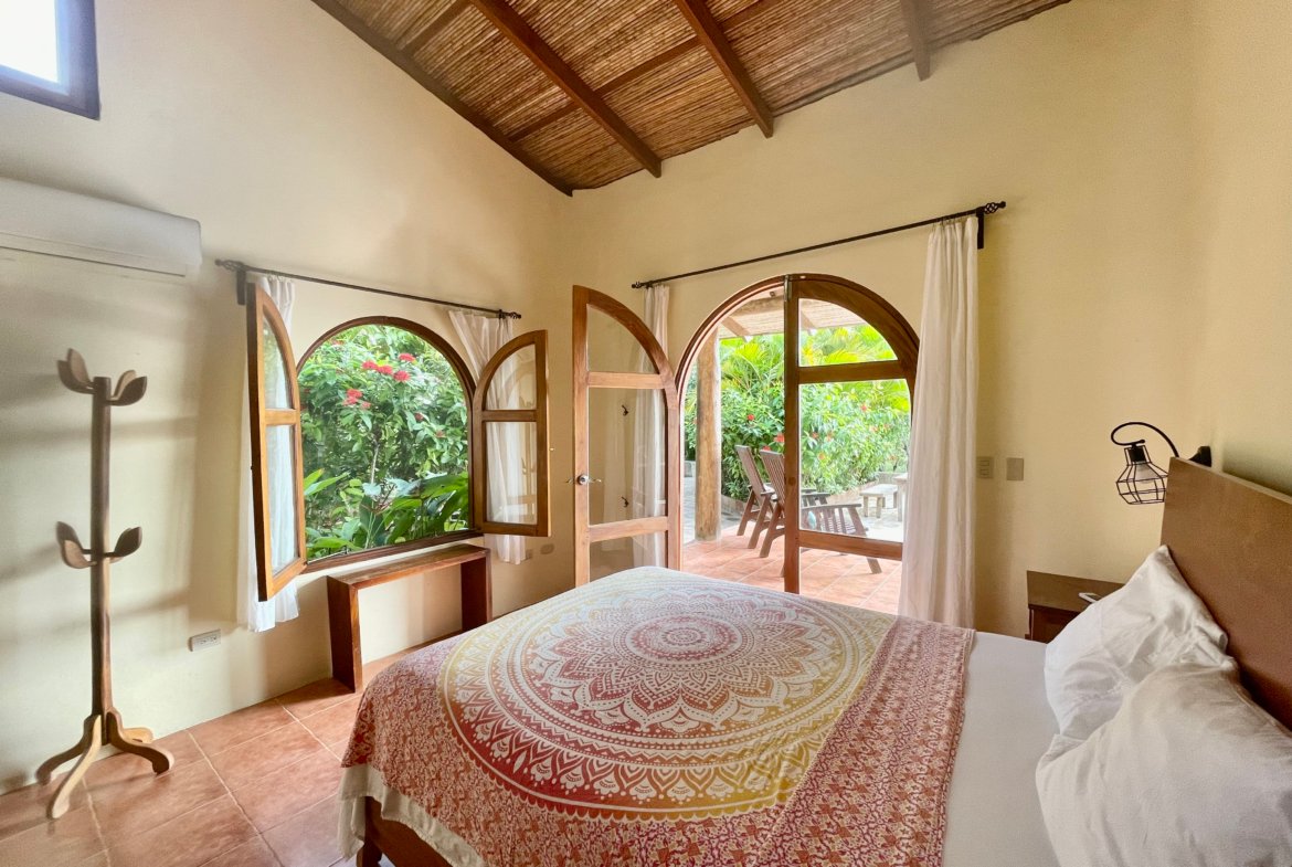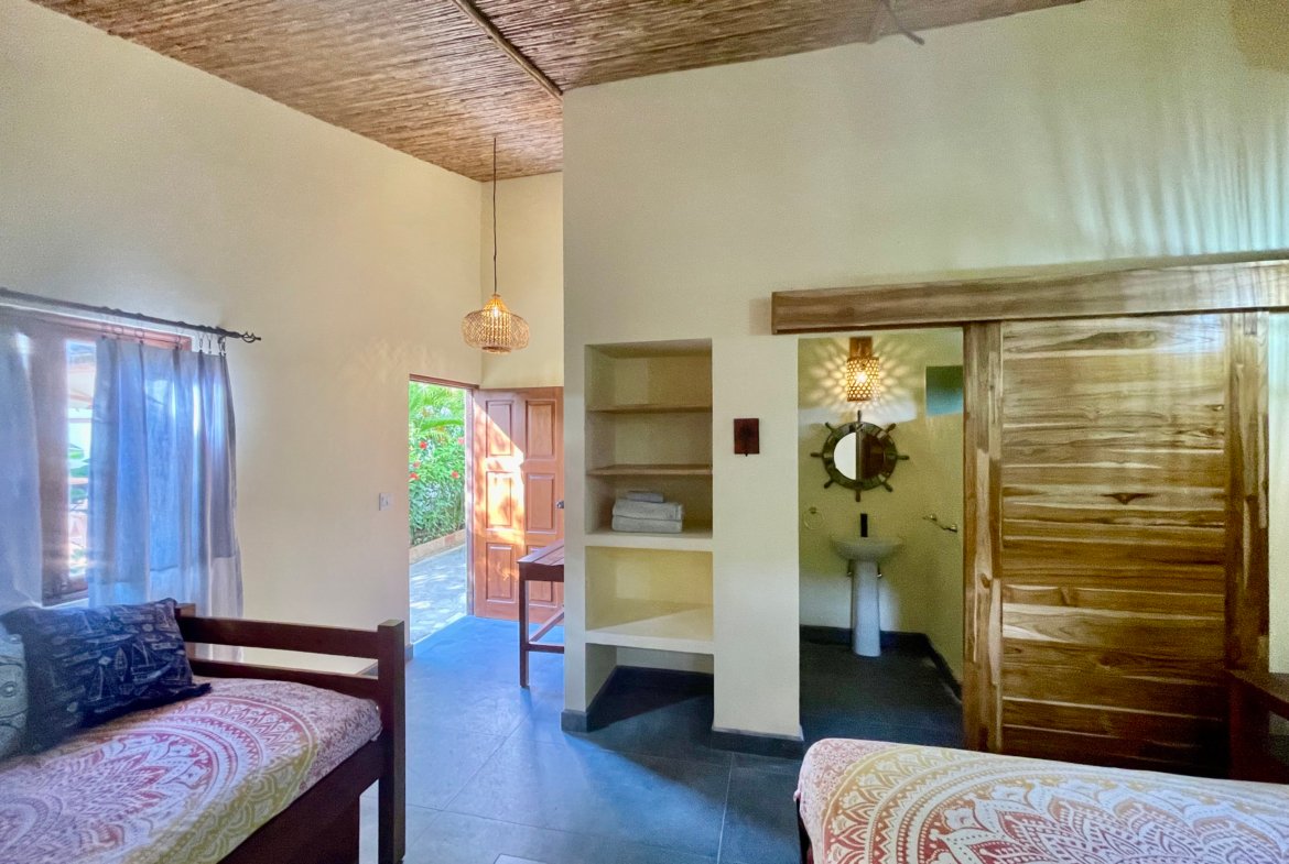 Three Luxurious Suites: Three private master suites surround the central pool and outdoor living area, creating a harmonious blend of indoor and outdoor living. Each suite features a private bathroom, custom wood furniture, air conditioning, hot water, and large walk-in showers.