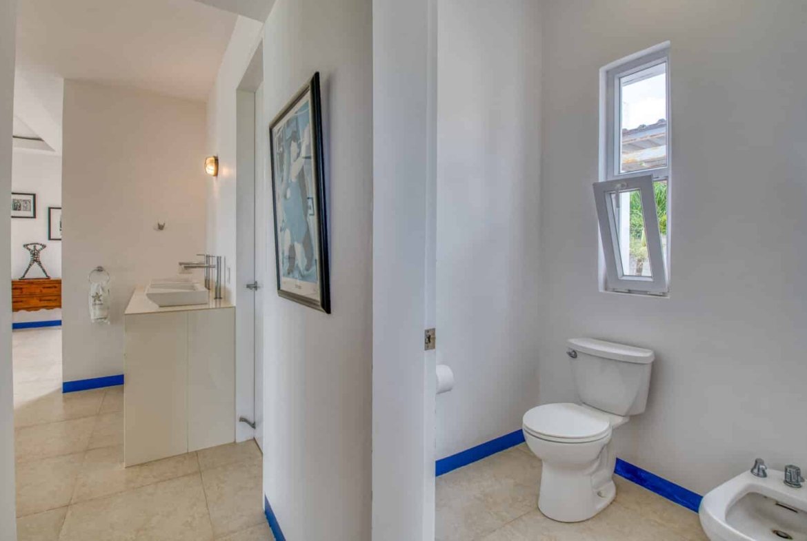 Two extra bedrooms, each with a private bathroom, are situated beneath the main patio, offering ideal quarters for staff or additional guests with separate entrances. A fully independent caretaker’s residence, complete with a bathroom, is conveniently located at the lower entrance of the property.