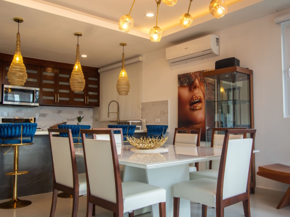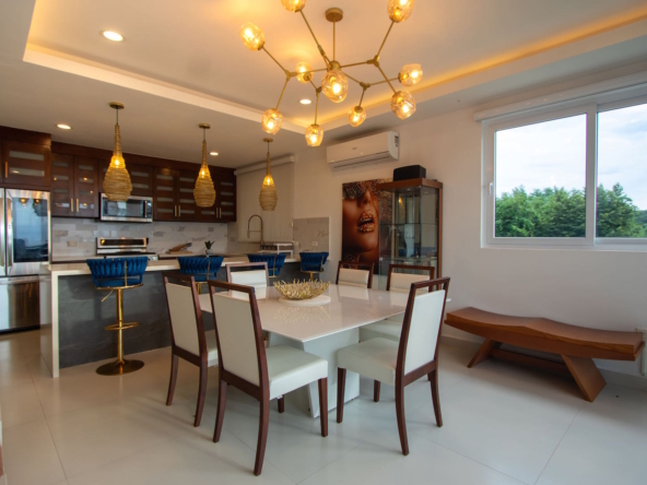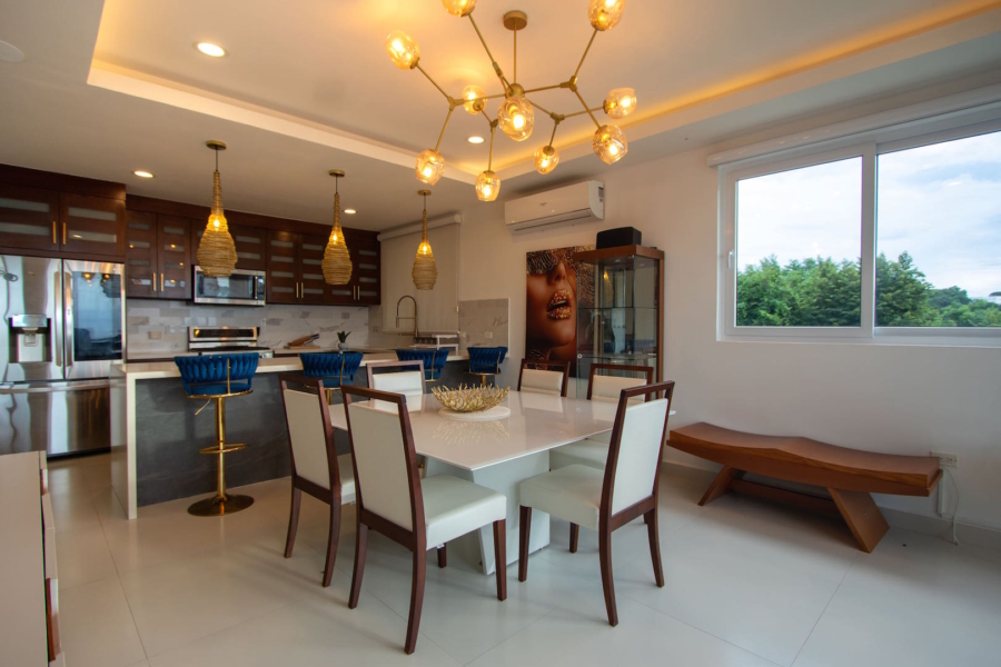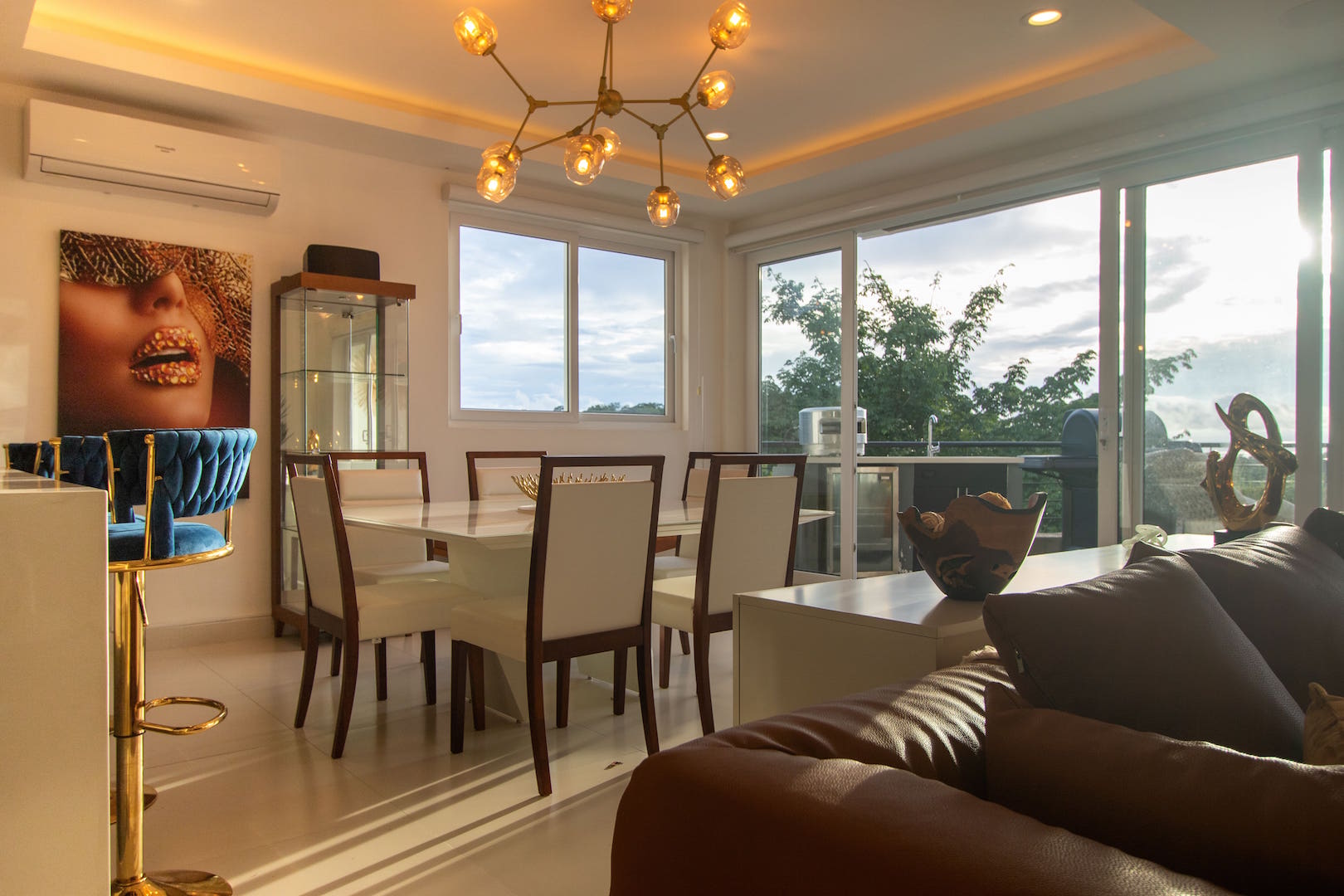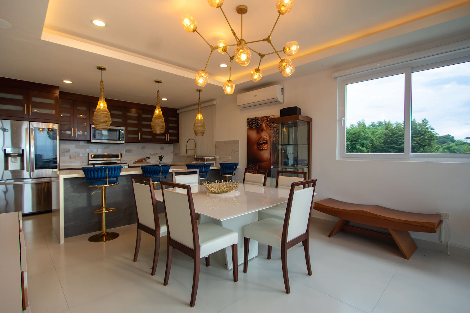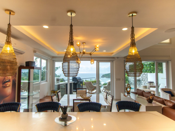 This level also includes a guest bedroom and a full bathroom, plus direct access to the private pool area — complete with a bar, barbecue, and outdoor ovens — perfect for entertaining while enjoying the breathtaking ocean and mountain views.