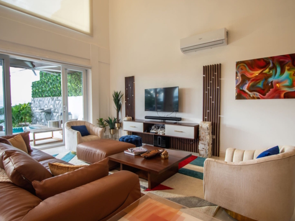 Every detail of Malibu Villa 21 has been carefully curated for both comfort and innovation, from remote-controlled windows to digital ceiling fans, ensuring effortless living in a tropical setting.