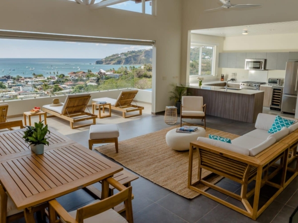 Discover a superior lifestyle at La Santa María, an exclusive, amenity-rich community steps from the heart of San Juan del Sur. This stunning, fully-furnished duplex-style villa gives you the perfect mix of luxury living and incredible convenience. Wake up to breathtaking, sweeping ocean views over the bay and the town, all while being secure and close to everything.