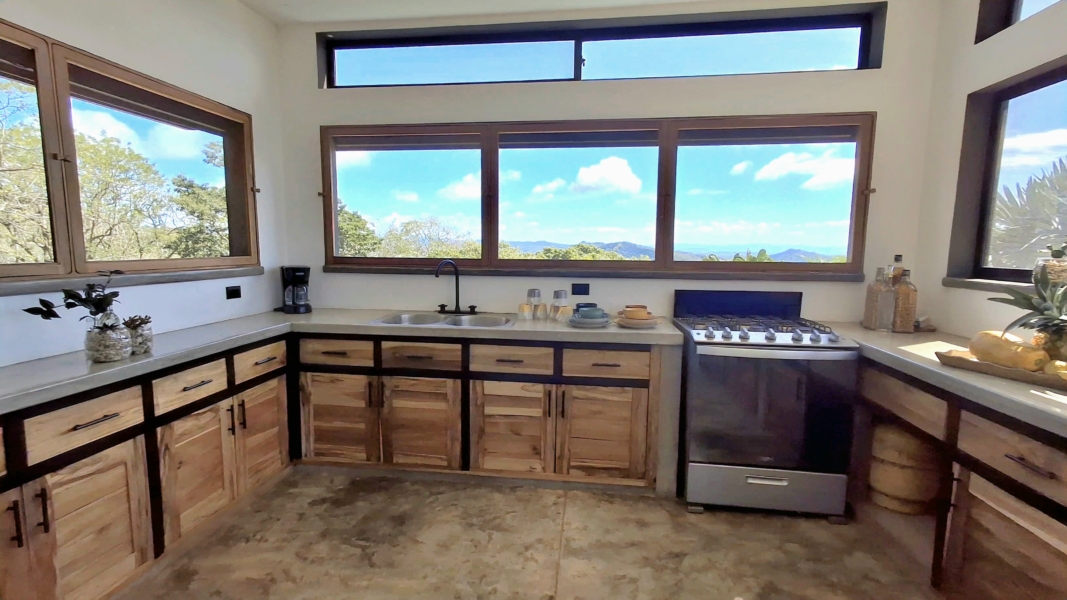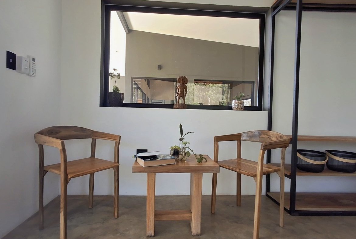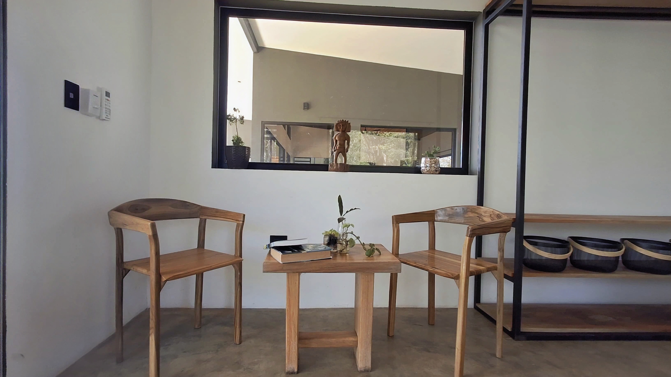 - Natural materials throughout: Laurel wood doors and furniture, Teak roof, Guanacaste wood tables