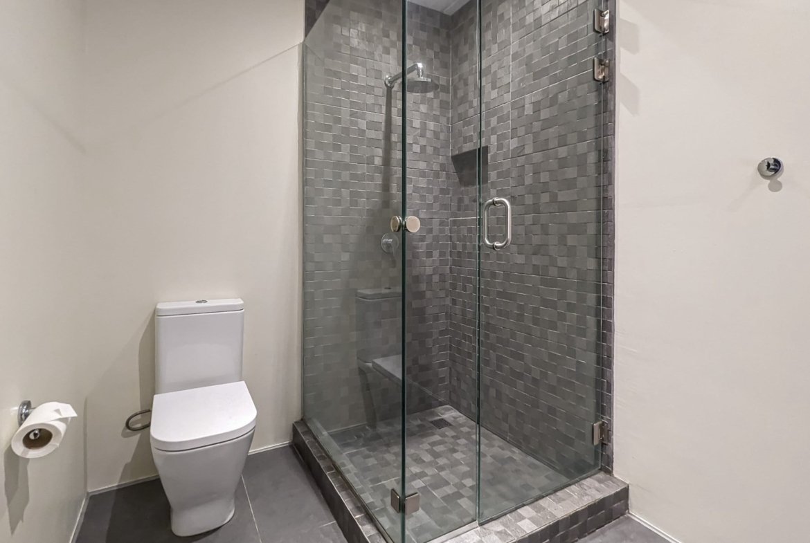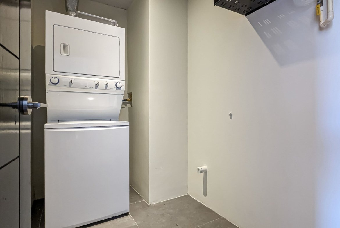 Upon entering, you’re welcomed by a sophisticated kitchen, complete with a large island, quartz countertops, and upscale stainless steel appliances, including a dishwasher. The kitchen’s ample cabinet space ensures functionality without compromising on style.