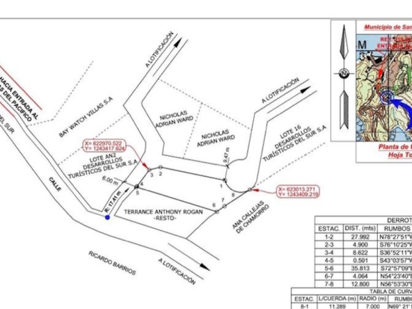 Nestled on a scenic hillside in the highly desirable Brisas del Pacifico community, this 458 m² lot offers sweeping views of the Pacific Ocean, San Juan del Sur Bay, and the colorful town below.