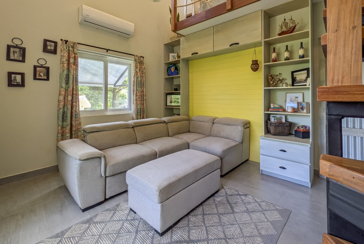 The property is sold fully furnished with quality pieces. Practical features include a full solar power system for reduced utility costs and a paved parking area with space for two vehicles.