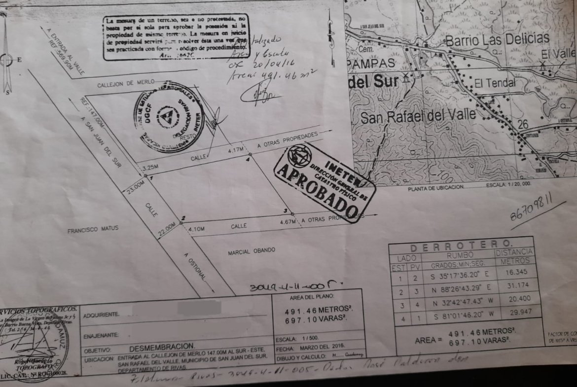 This 491.46 m² flat lot is strategically located in Las Delicias, featuring street access on both sides and direct frontage on the main road, providing excellent visibility and accessibility for commercial or business projects.