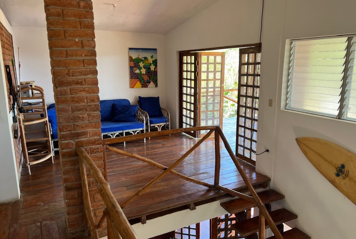 Escape to this charming brick home nestled in the jungle, offering breathtaking ocean views, vibrant sunsets, and endless possibilities. Situated on 5+ acres of lush land, this versatile property can be transformed into a yoga or surf retreat, eco-hostel, or private homestead, making it an ideal investment or personal sanctuary.
