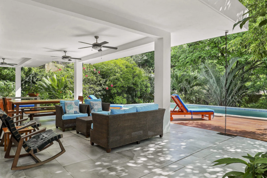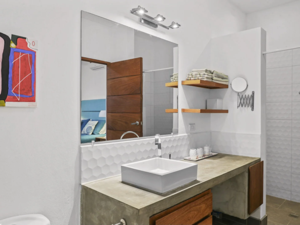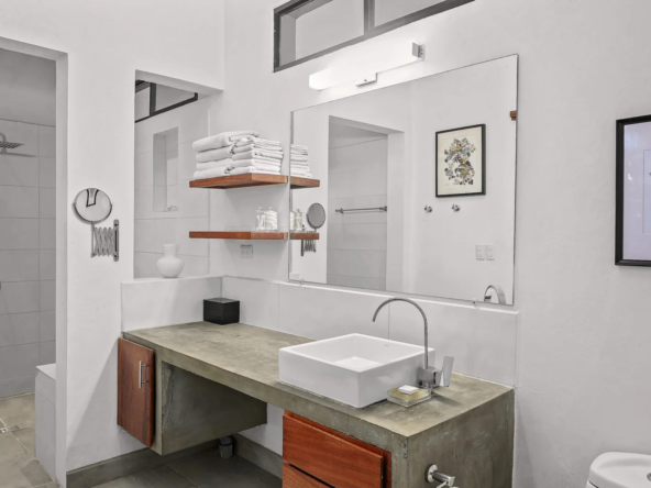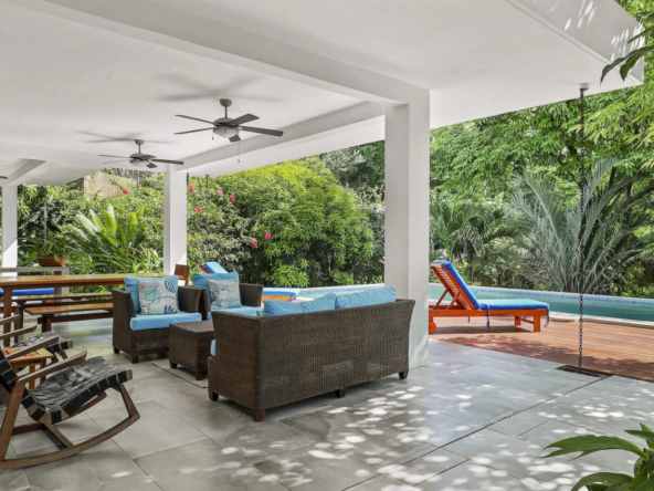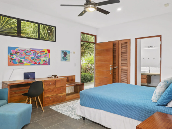 This three-bedroom, three-and-a-half-bathroom home is located on a generous 1,113 square meter lot in San Juan del Sur. Constructed in 2016, it offers a rare combination of privacy and walkable access to the town’s beaches, restaurants, and market.