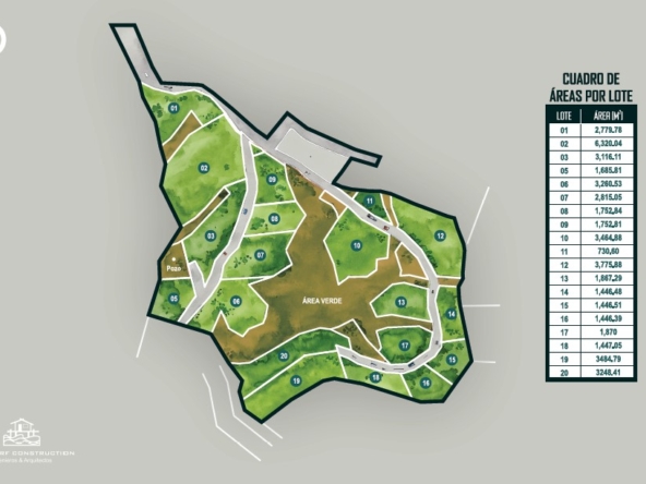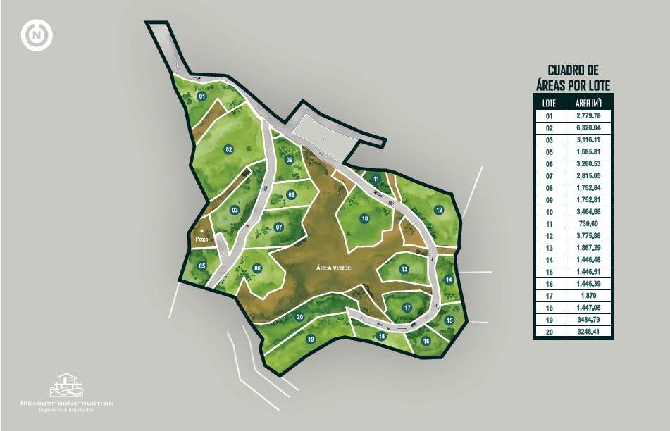 - 20 private lots ranging from 1,000 to 7,000 m²