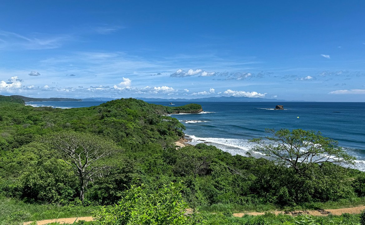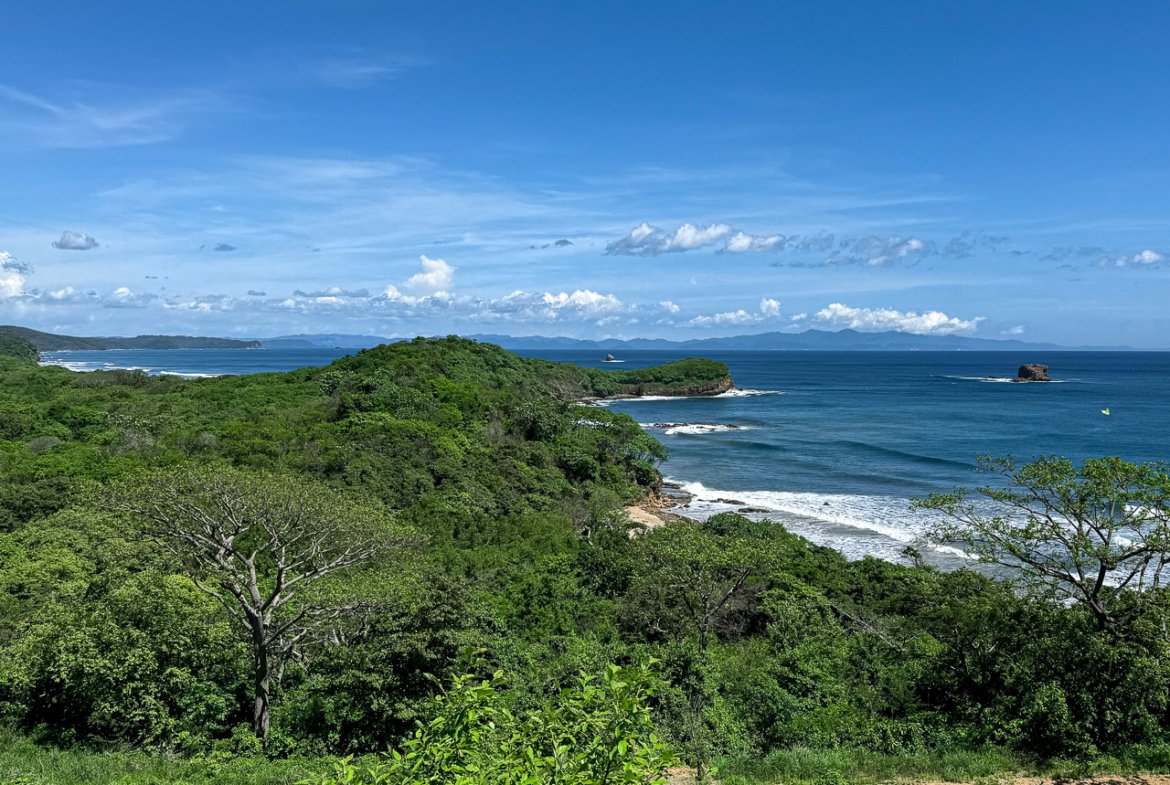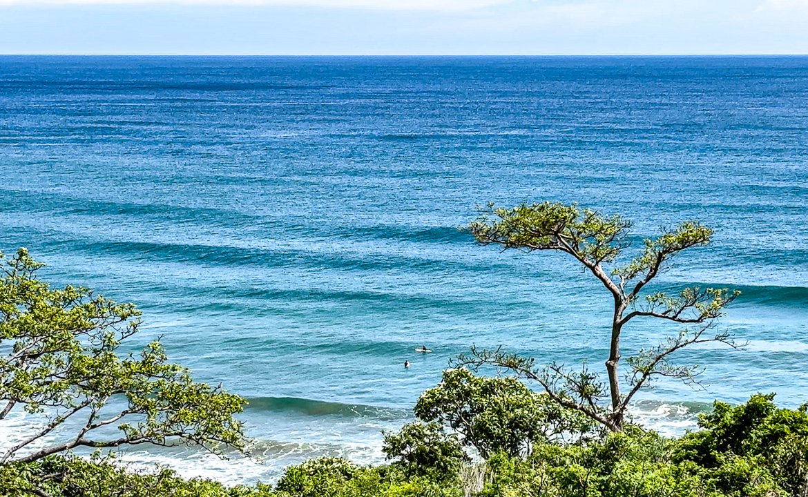 Imagine waking up to panoramic views of the Pacific Ocean and watching surfers ride waves from your own property. This nearly beachfront lot is located in the ‘Las Cumbres’ section of the Remanso Beach community, positioned at the southern tip for unparalleled elevation and breathtaking vistas. From here, you’ll enjoy clear views of Tamarindo Beach, Hermosa Beach, the lush mountainous landscape between them, and the Pacific coastlines of both Nicaragua and Costa Rica. Of course, the surf breaks and surfers in the water are always in view!