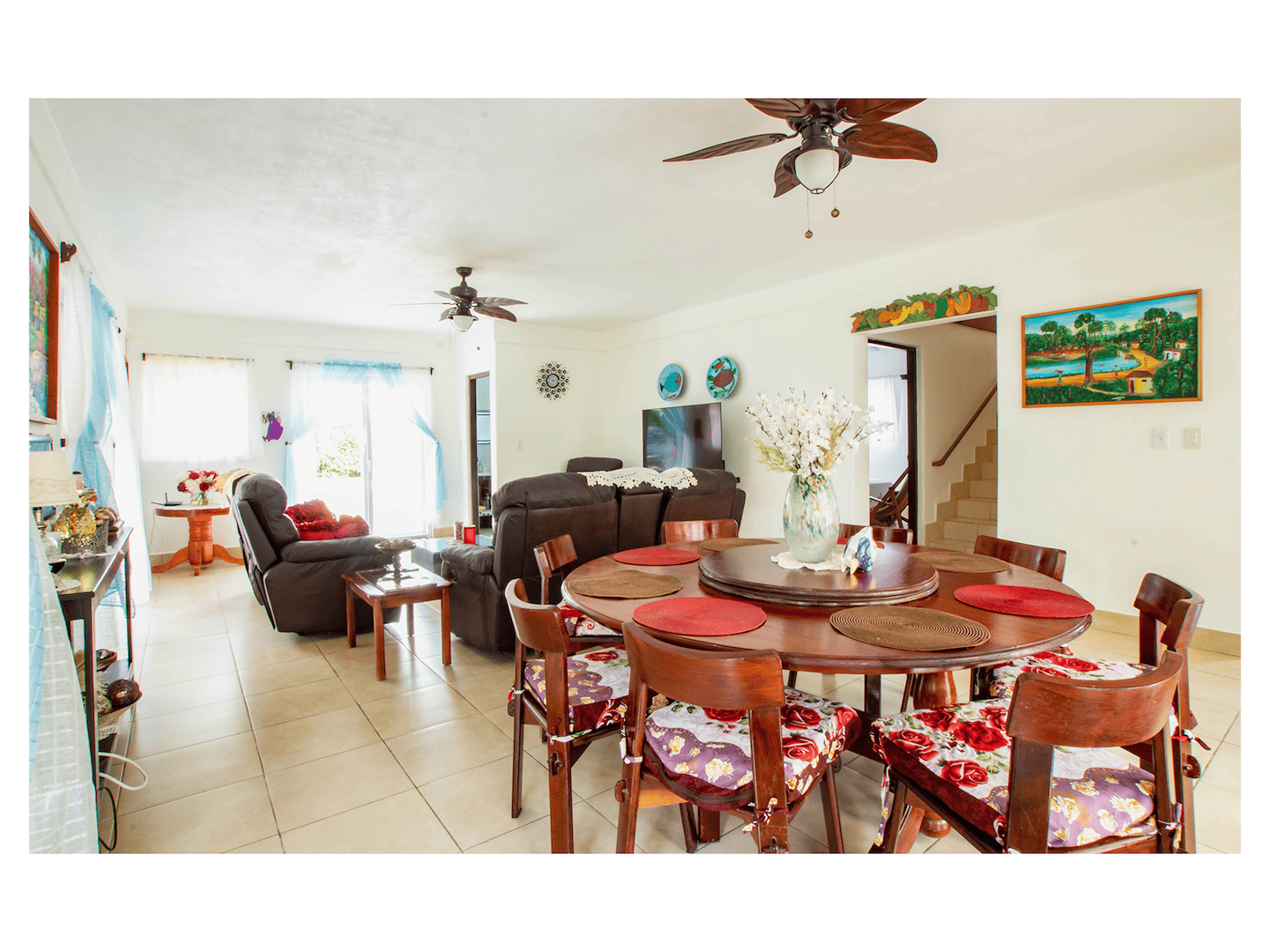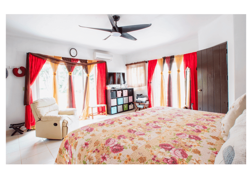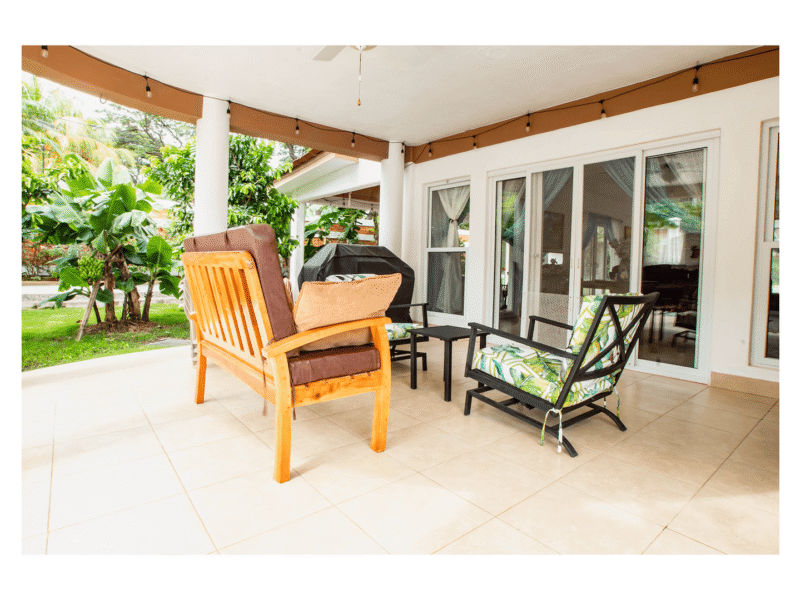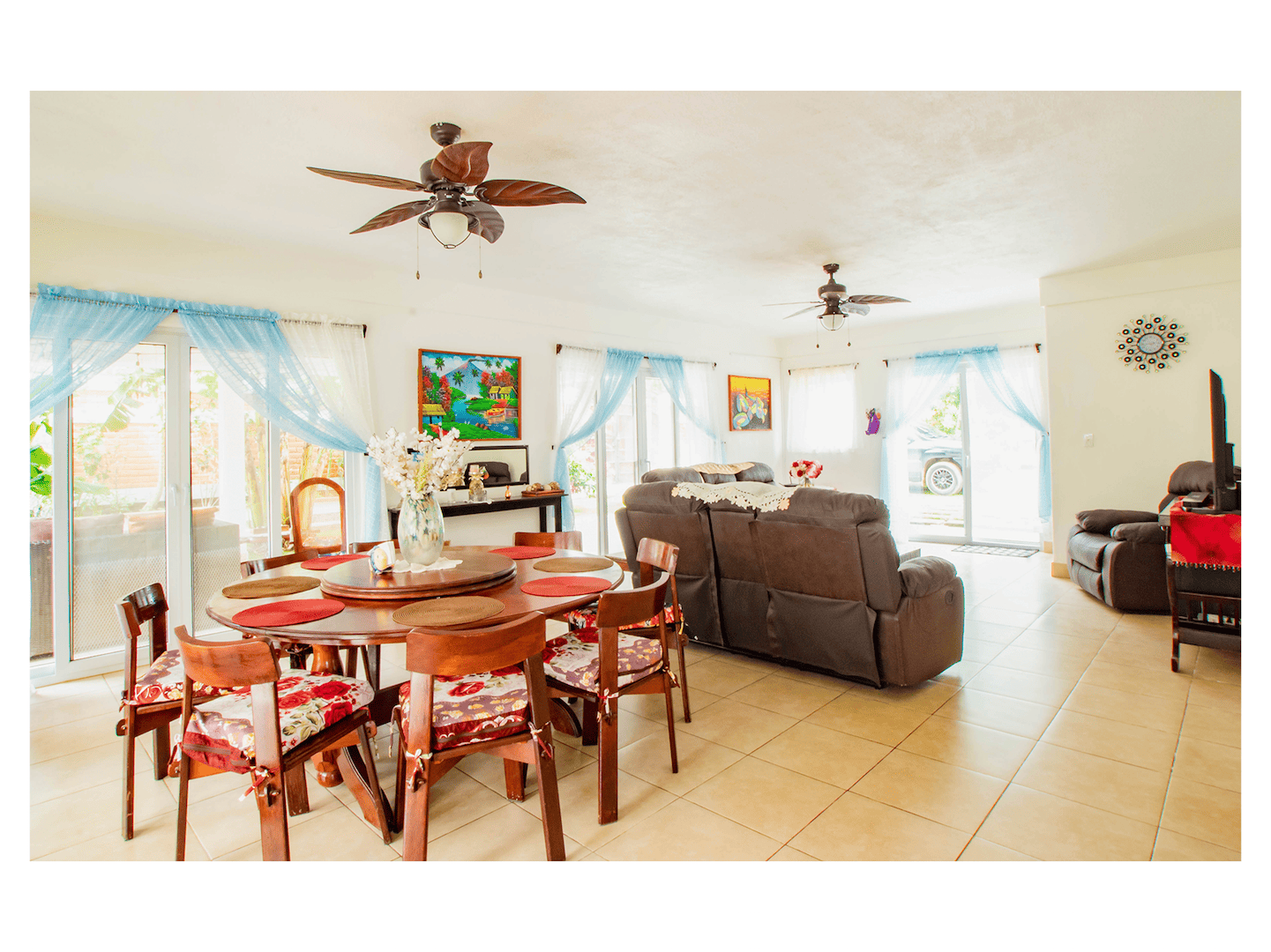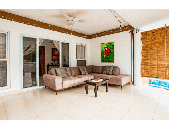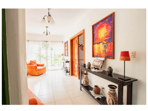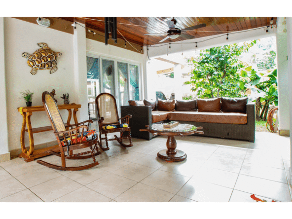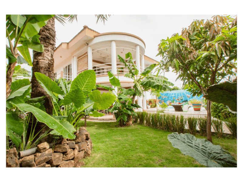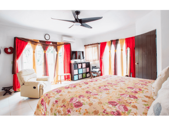 The villa embraces the tropical climate. Large, bright rooms open directly onto lush, shaded garden patios, creating a relaxed, resort-style atmosphere perfect for unwinding or entertaining guests.