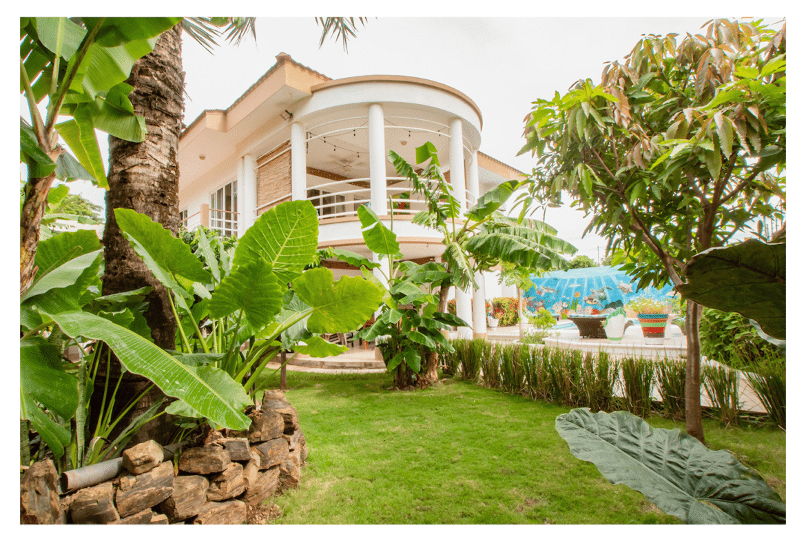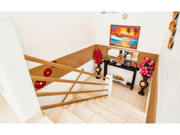 Set within a secure perimeter wall and surrounded by lush tropical landscaping, this villa blends classic coastal style with modern comfort.