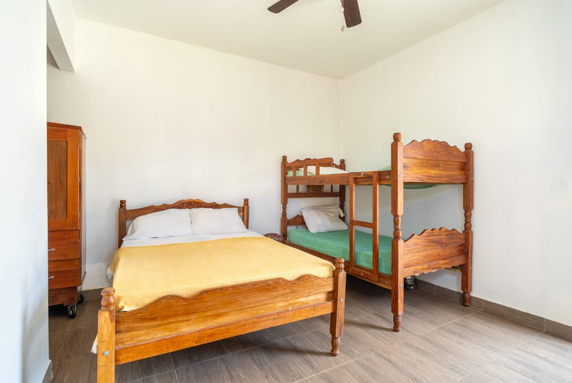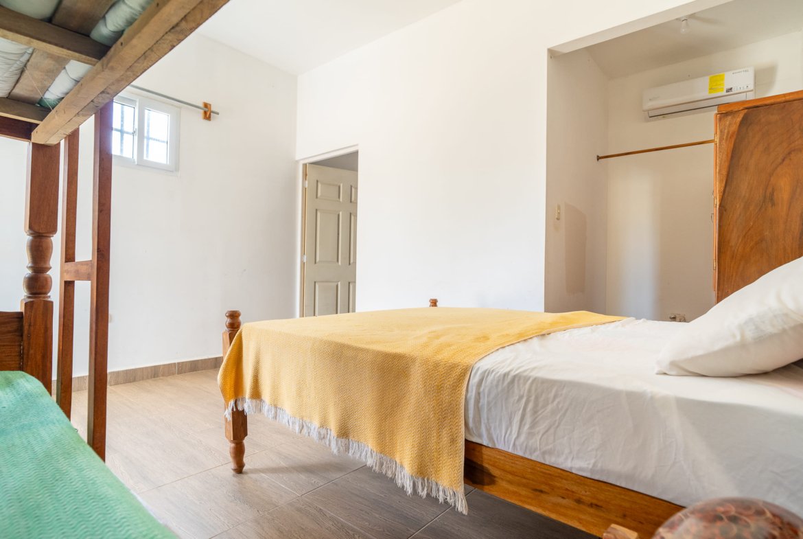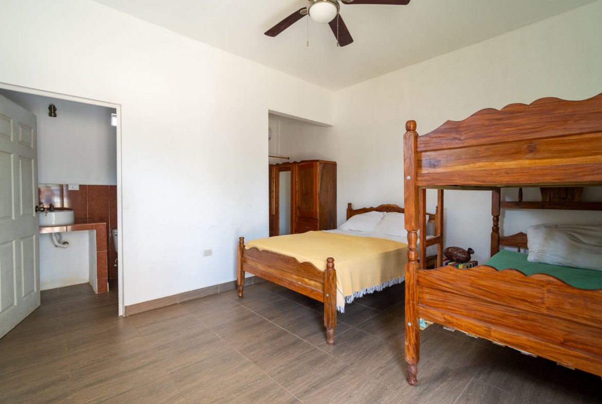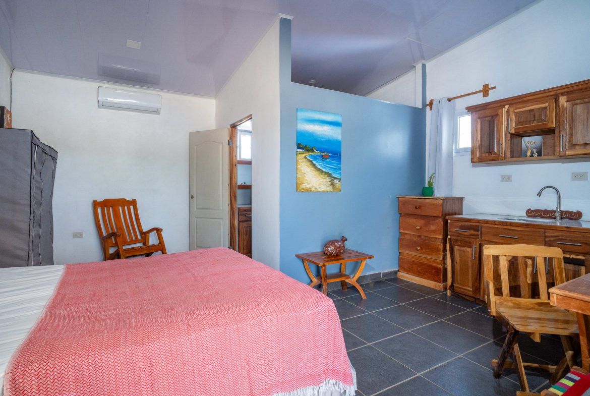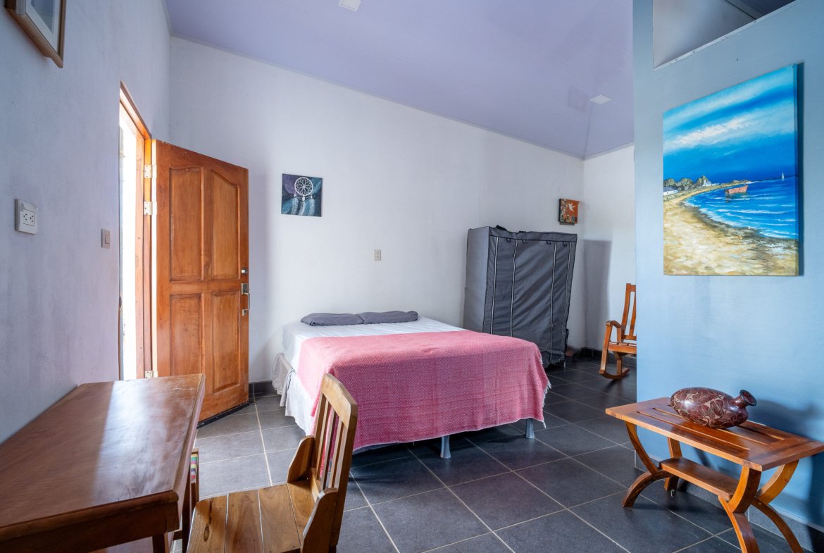 Comfortable Guest Suites for Visitors or Rental Income: The property boasts three distinct guest rooms. The cozy east room offers simplicity, while the other two provide enhanced comfort and convenience. These include a spacious middle room with a counter, sink, AC, ensuite bathroom, and even a washing machine, and a similar-sized third room with an ensuite bathroom and AC. Both of these rooms open onto a large shared covered porch, ideal for escaping the afternoon sun and socializing.
