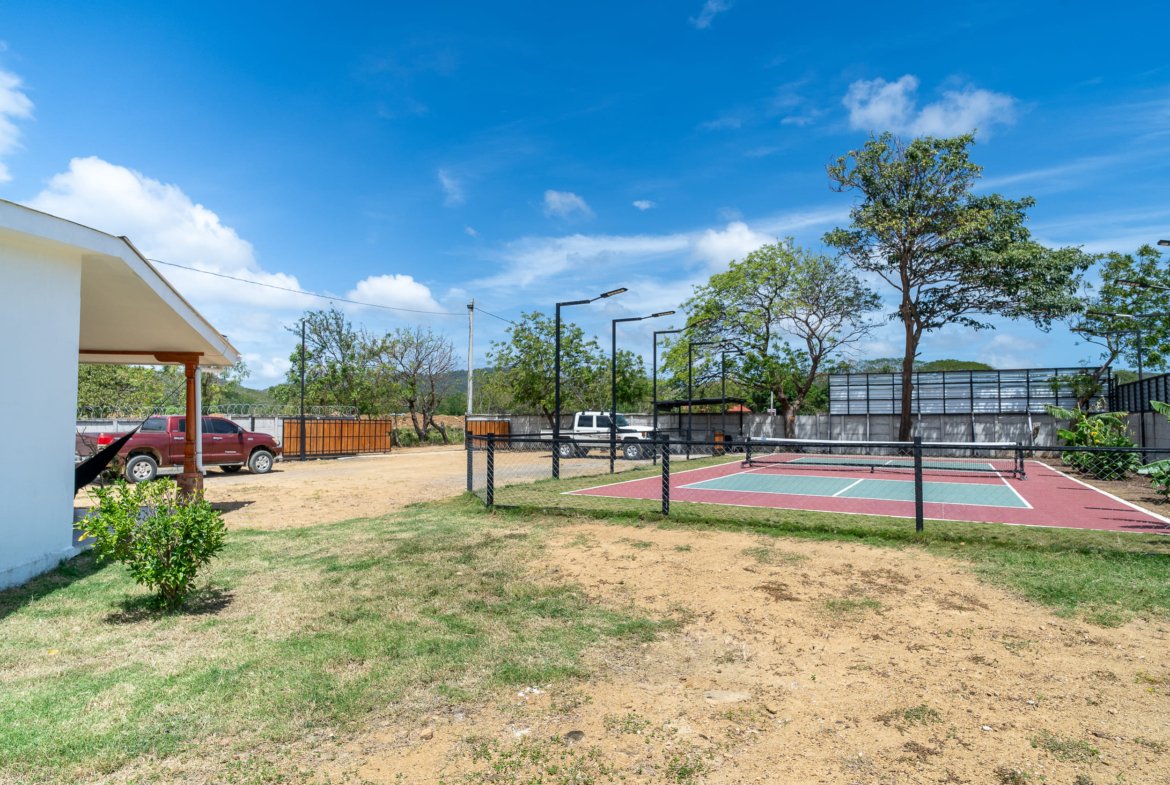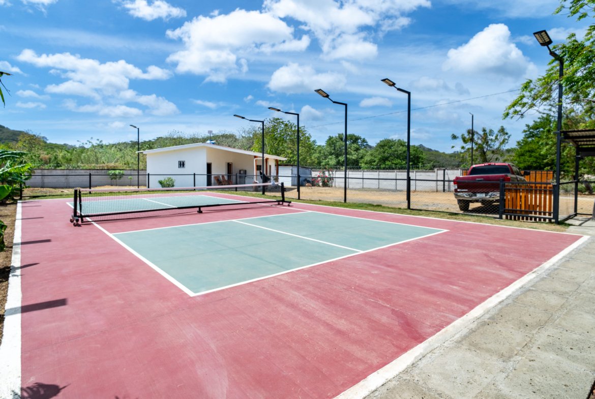 This unique property, featuring a private pickleball court and guest accommodations, offers an exceptional lifestyle and a fantastic business opportunity, all within a short drive of San Juan del Sur and stunning beaches.